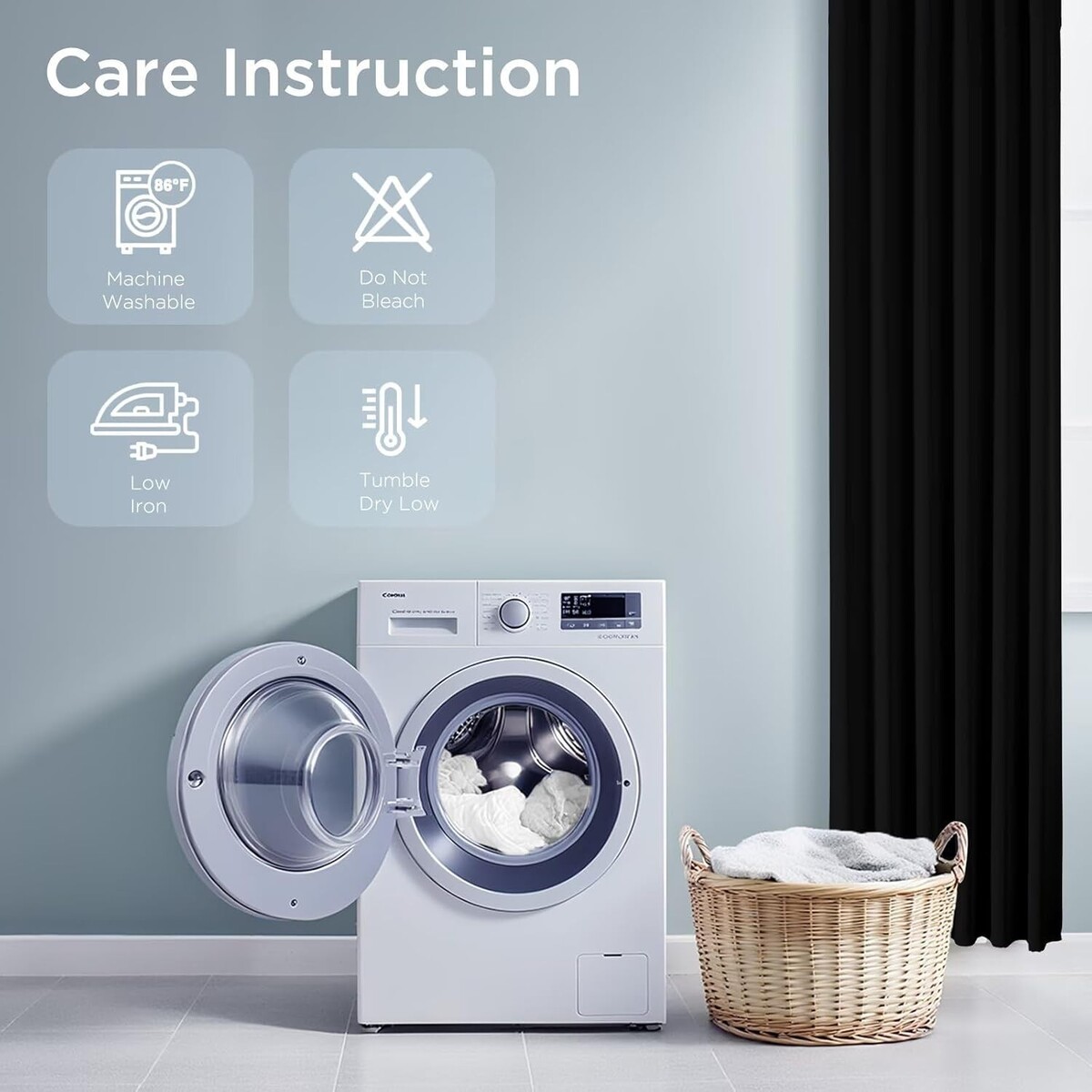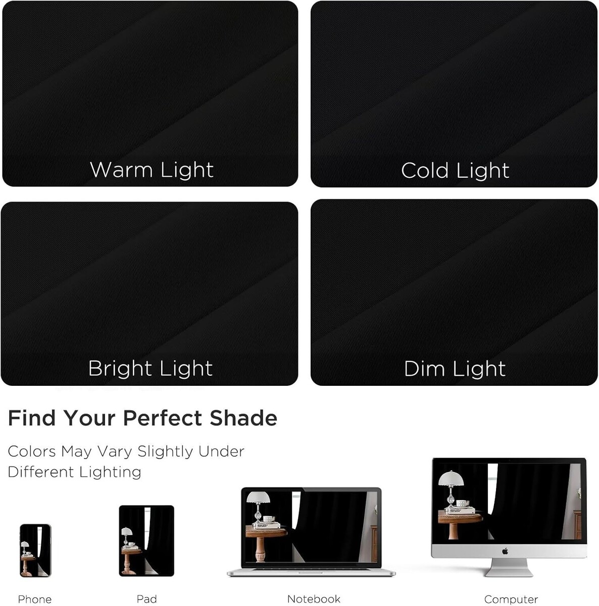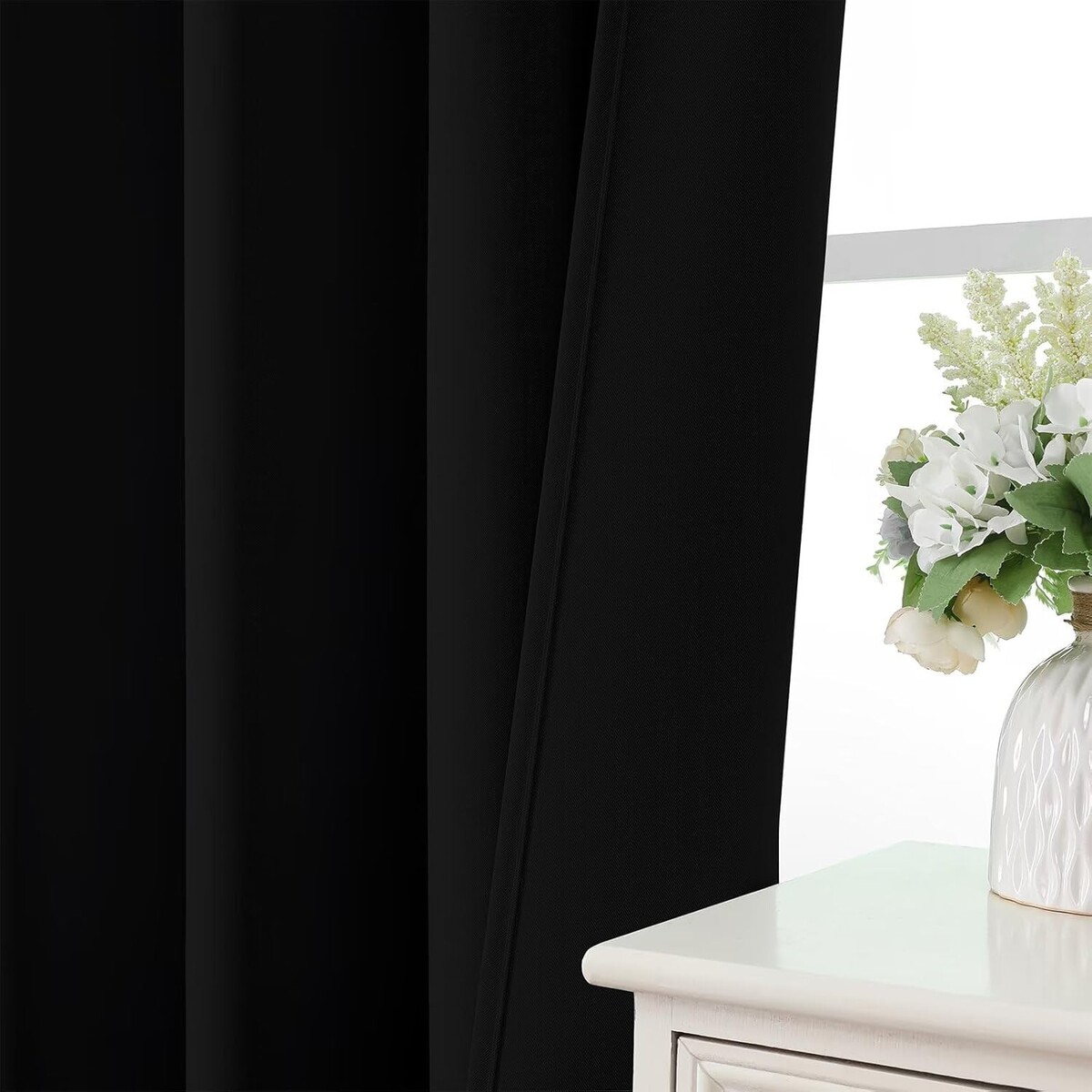 Elegant Black Blackout Curtains 84" Length - 2 Panels, Rod Pocket Design