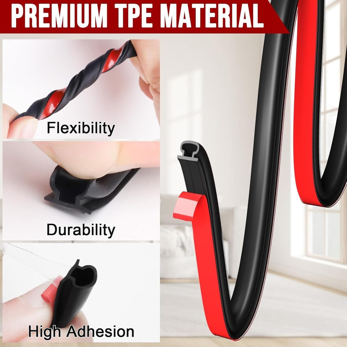 23 Ft Self-Adhesive TPE Rubber Weather Stripping for Soundproofing & Insulation