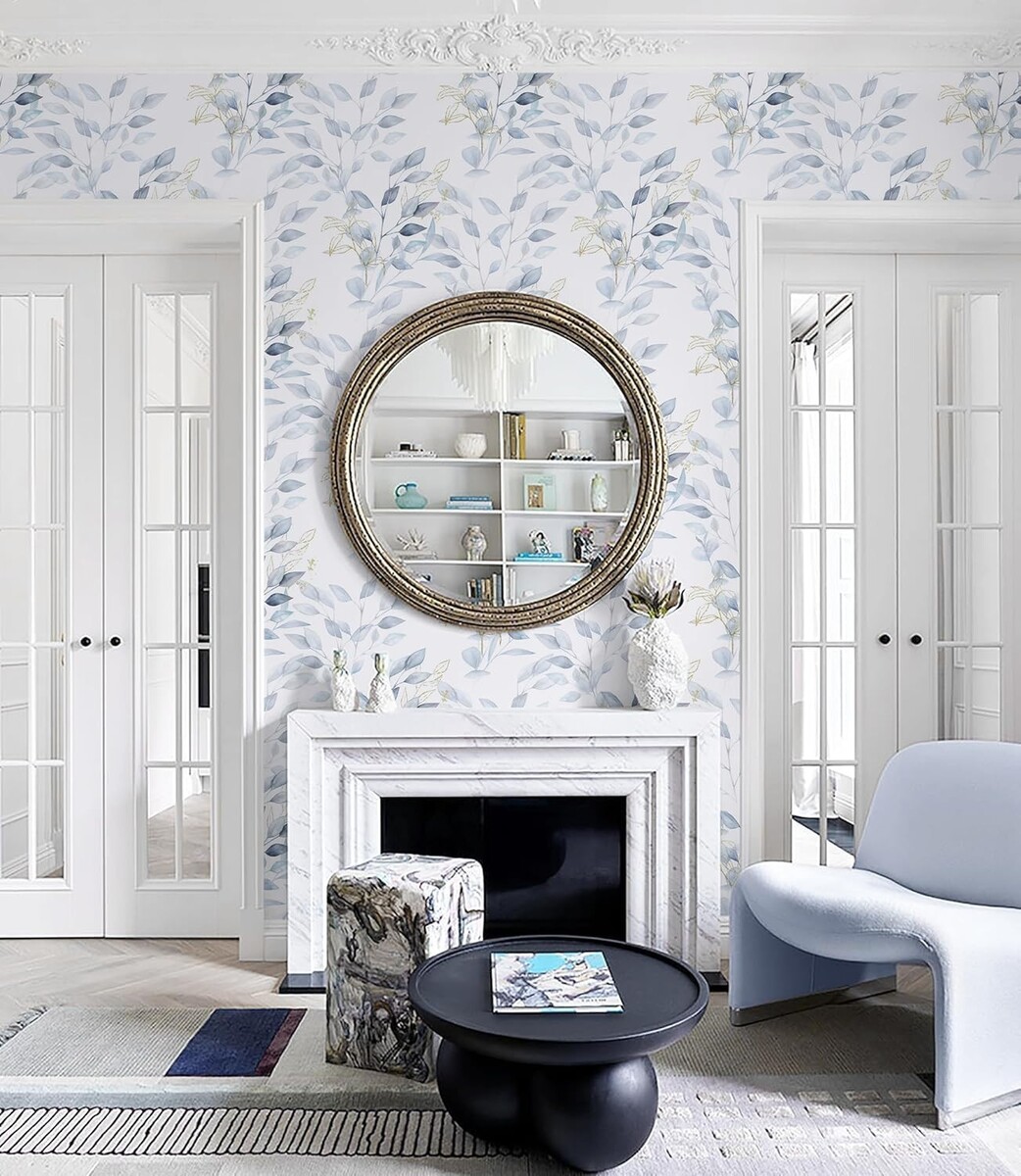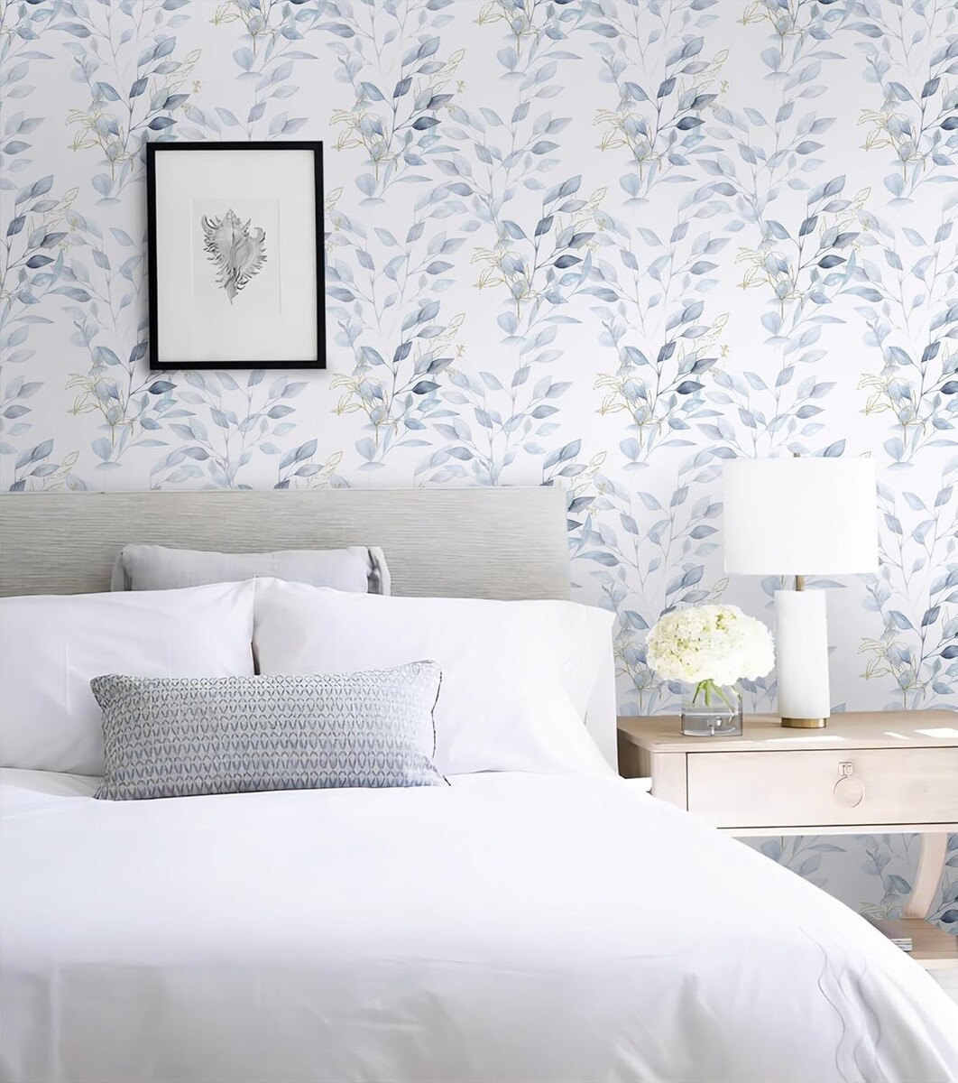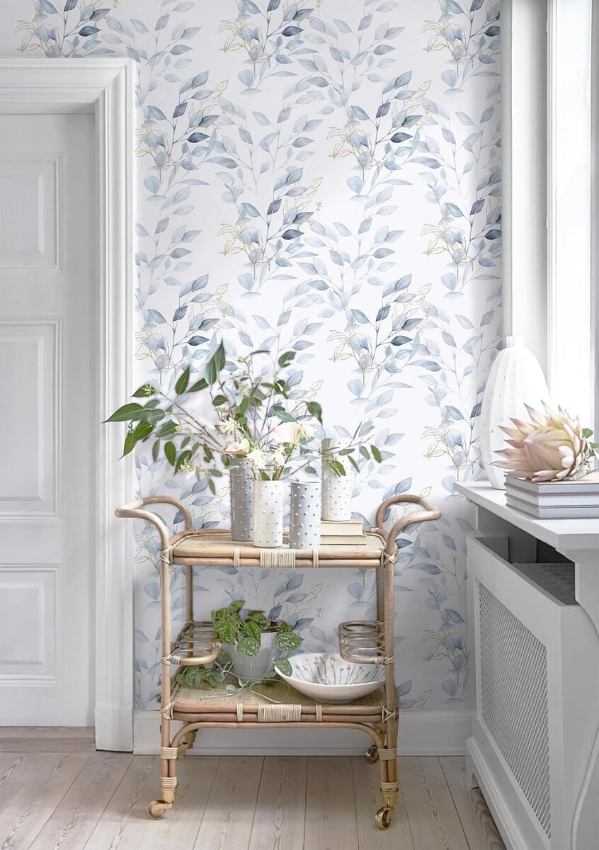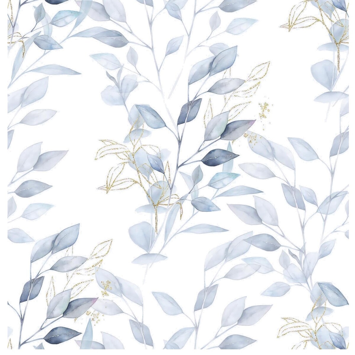 Removable Vinyl Wallpaper - Light Blue Floral Leaf for Renter-Friendly Decor