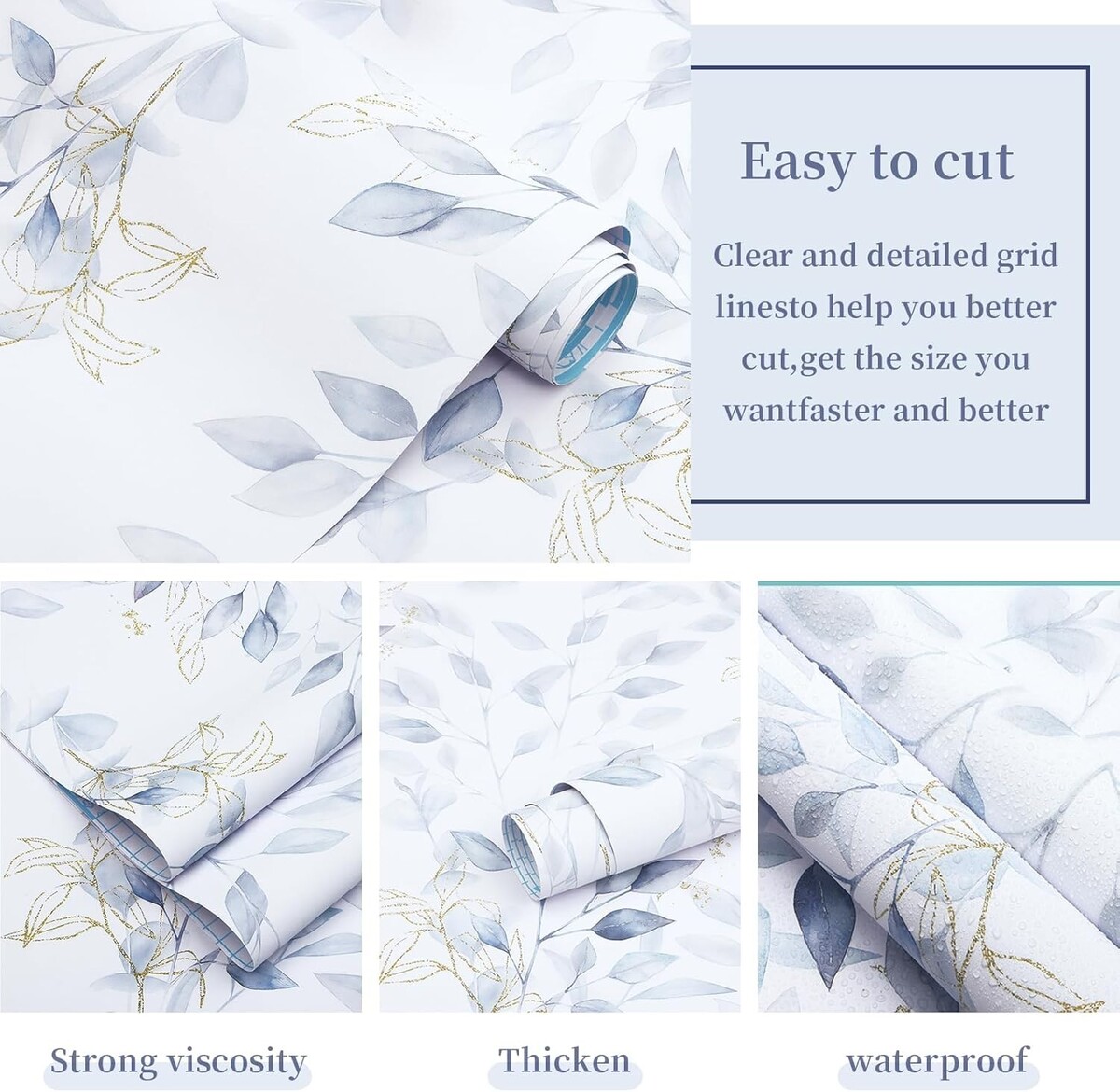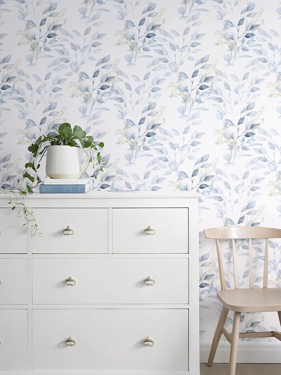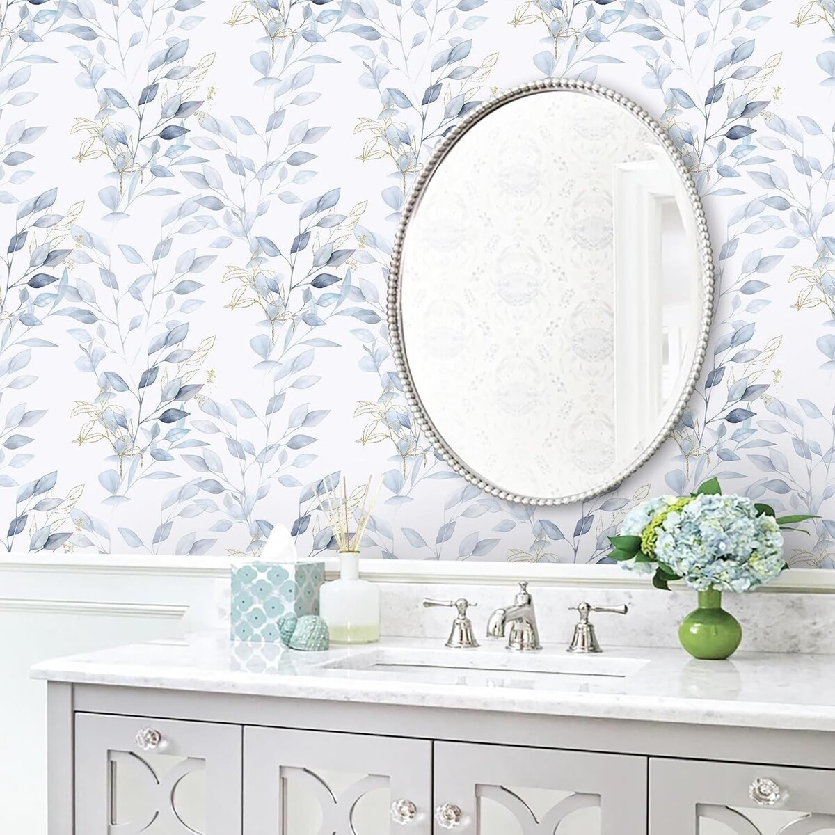 Removable Vinyl Wallpaper - Light Blue Floral Leaf for Renter-Friendly Decor