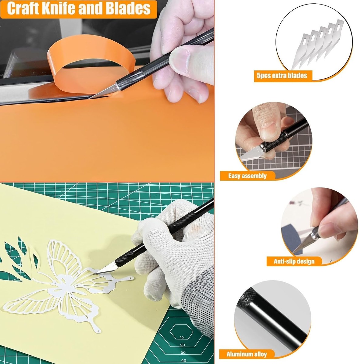 Craft Knife: Precision cutting made easy with an anti-slip handle and 5 spare razor blades for uninterrupted use.