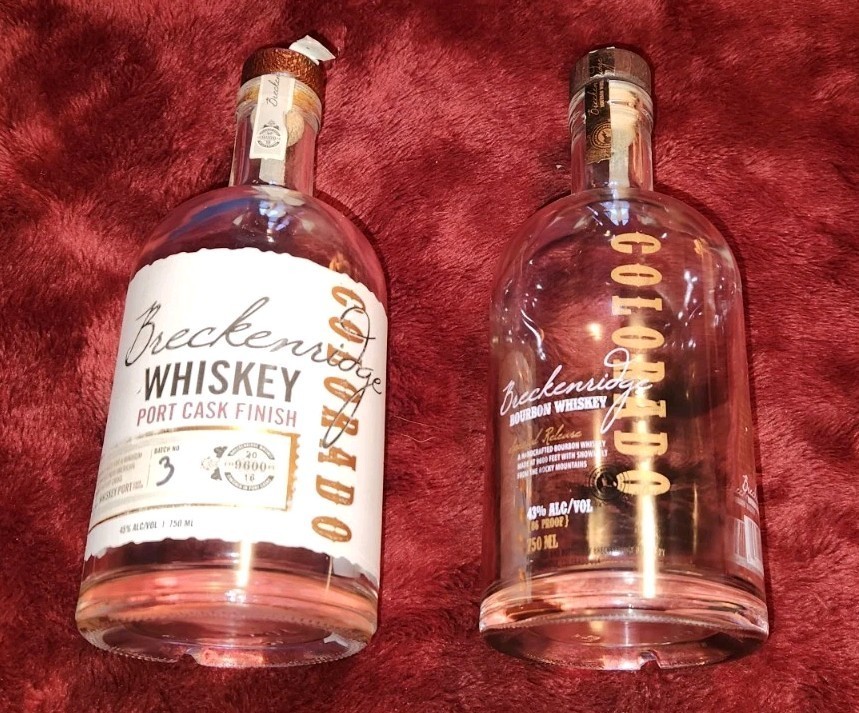 2 Empty Brekenridge Whiskey Bottles Bourbon Port Cask Finish