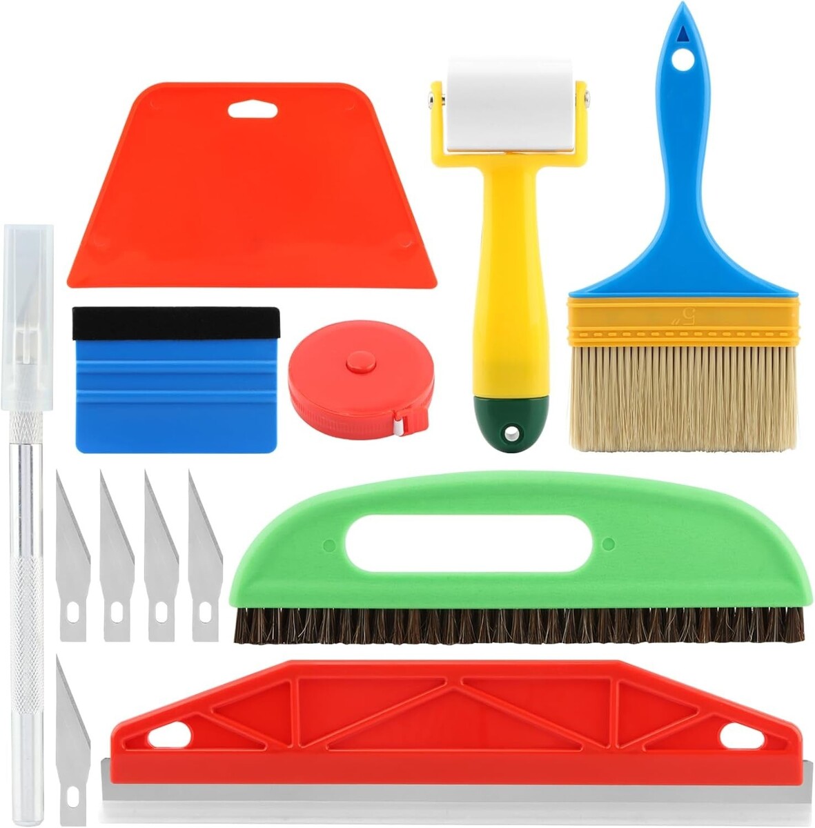 Comprehensive Toolset: Includes a paint brush, smoothing brush, craft knife with 5 replaceable blades, measuring tape, seam roller, and cutting tool with stainless steel blade.
