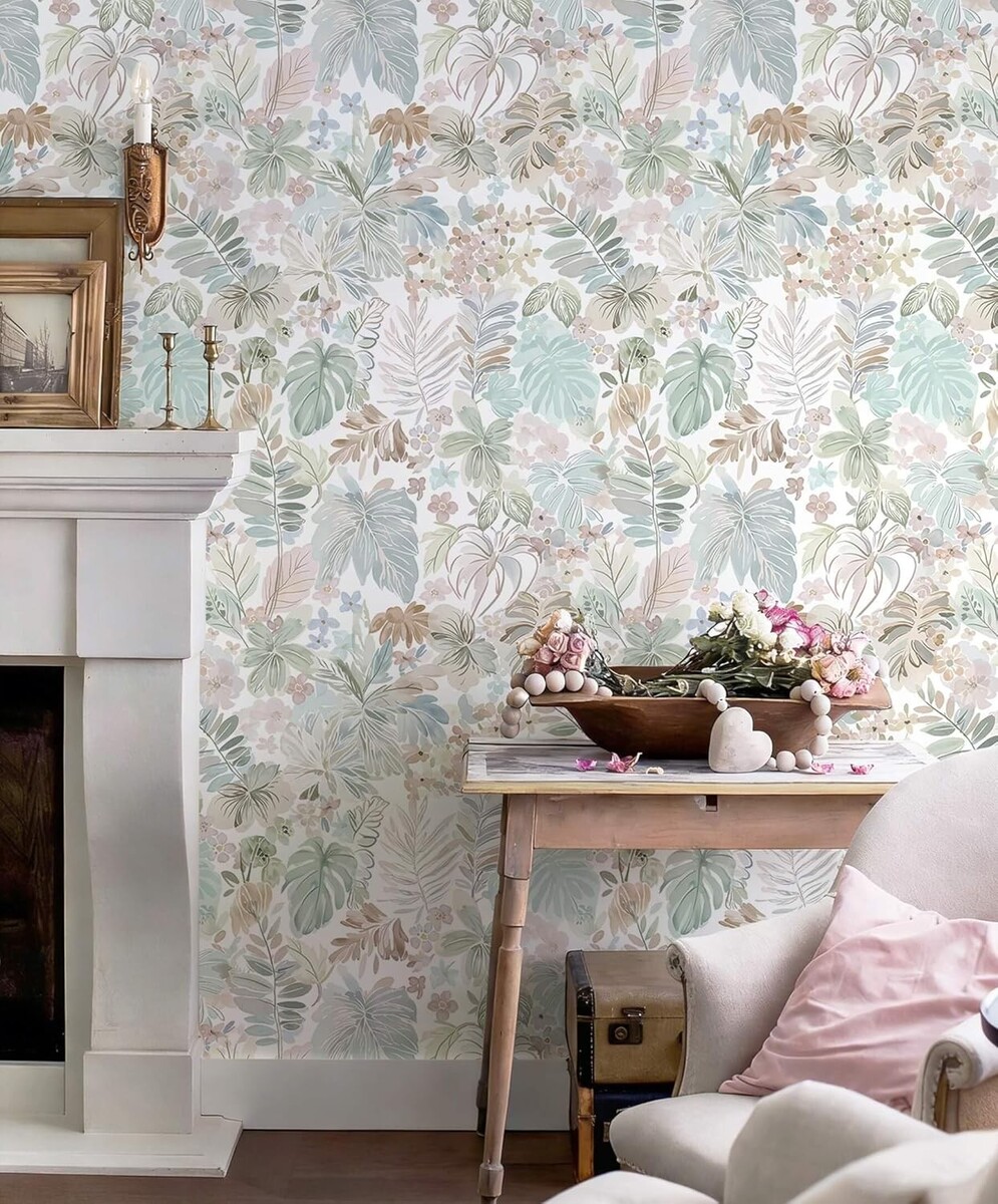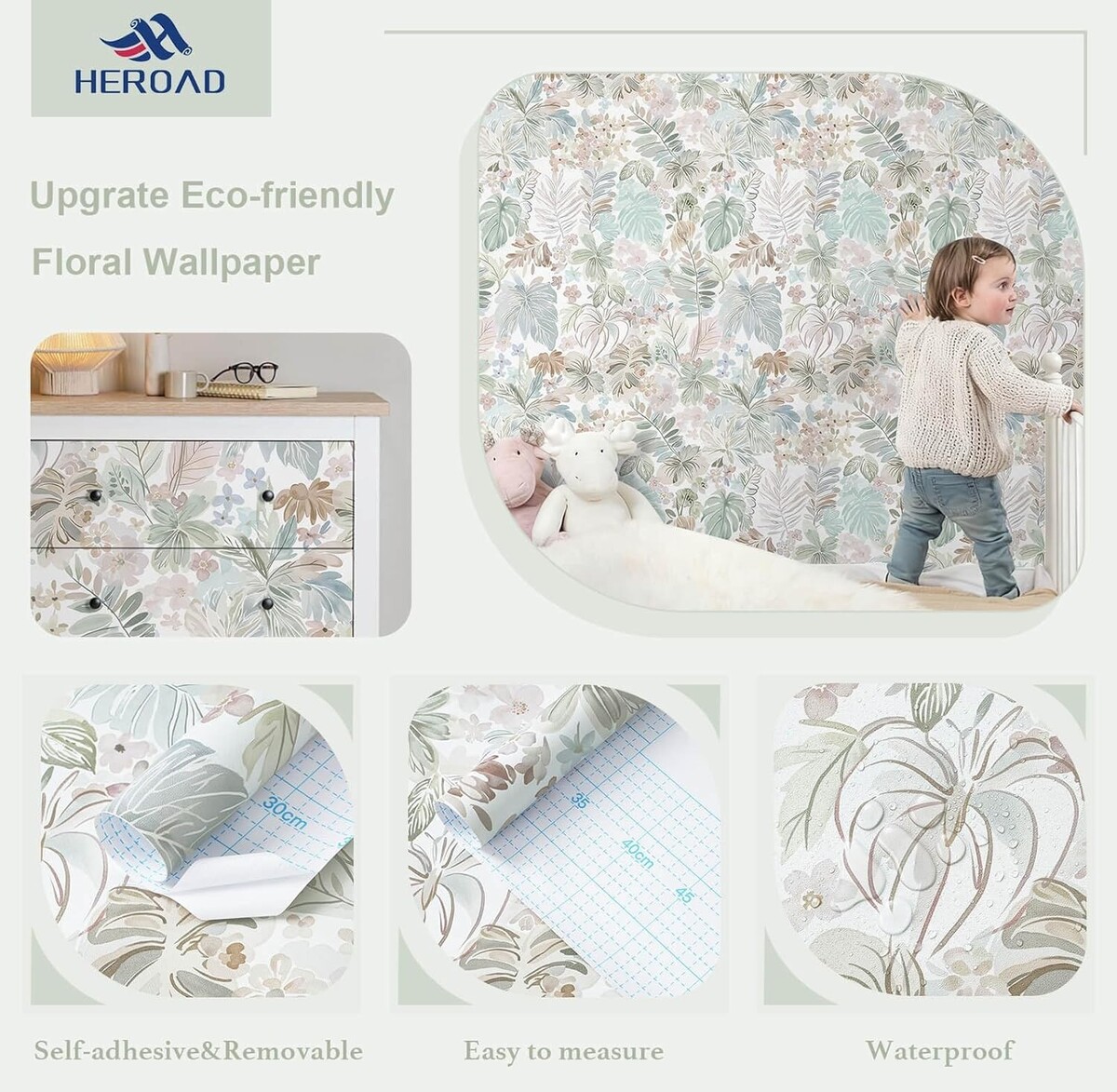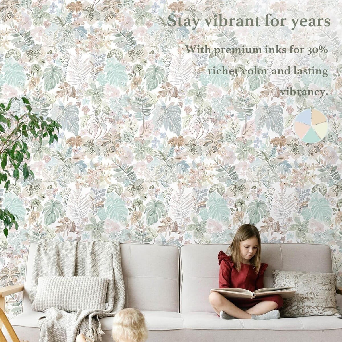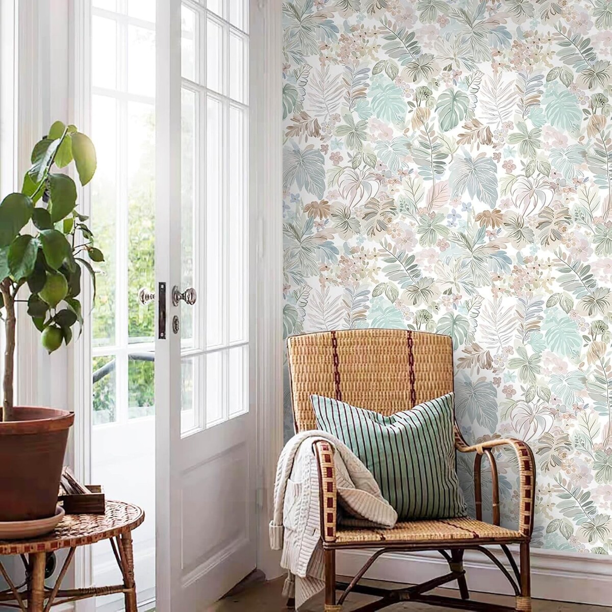 Tropical Floral Peel and Stick Wallpaper - Easy Removable Vinyl 17.3''x78.7''