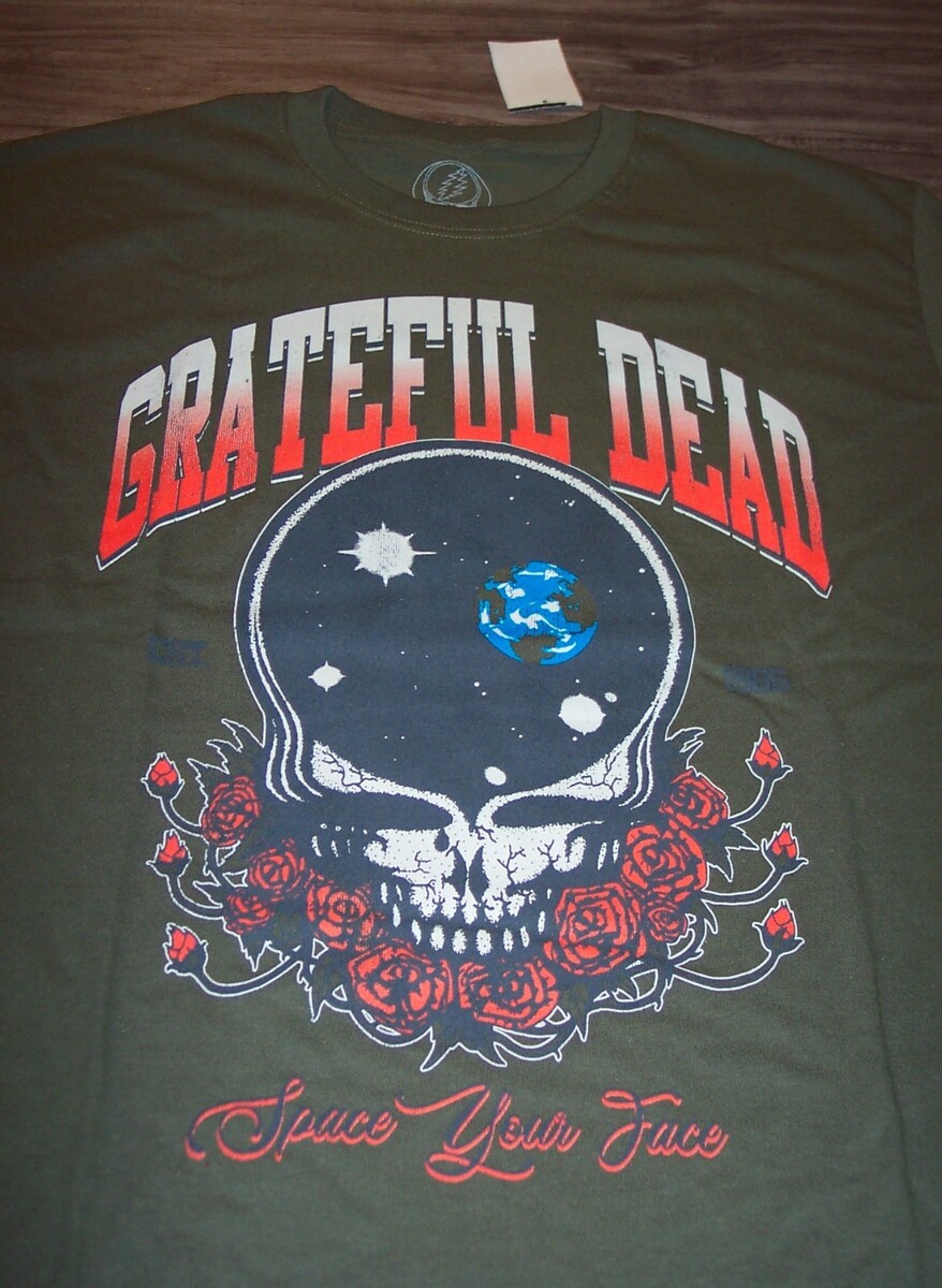This is a VINTAGE STYLE GRATEFUL DEAD SKULL SPACE YOUR FACE T-shirt. It is a size MEDIUM, and it is NEW w/ the Tag. It is 19 1/2 inches from armpit to armpit and 29 inches in length. The print is made to look vintage. It is a Gray with a slight tint of green. Combine auctions to save on shipping. D2AG