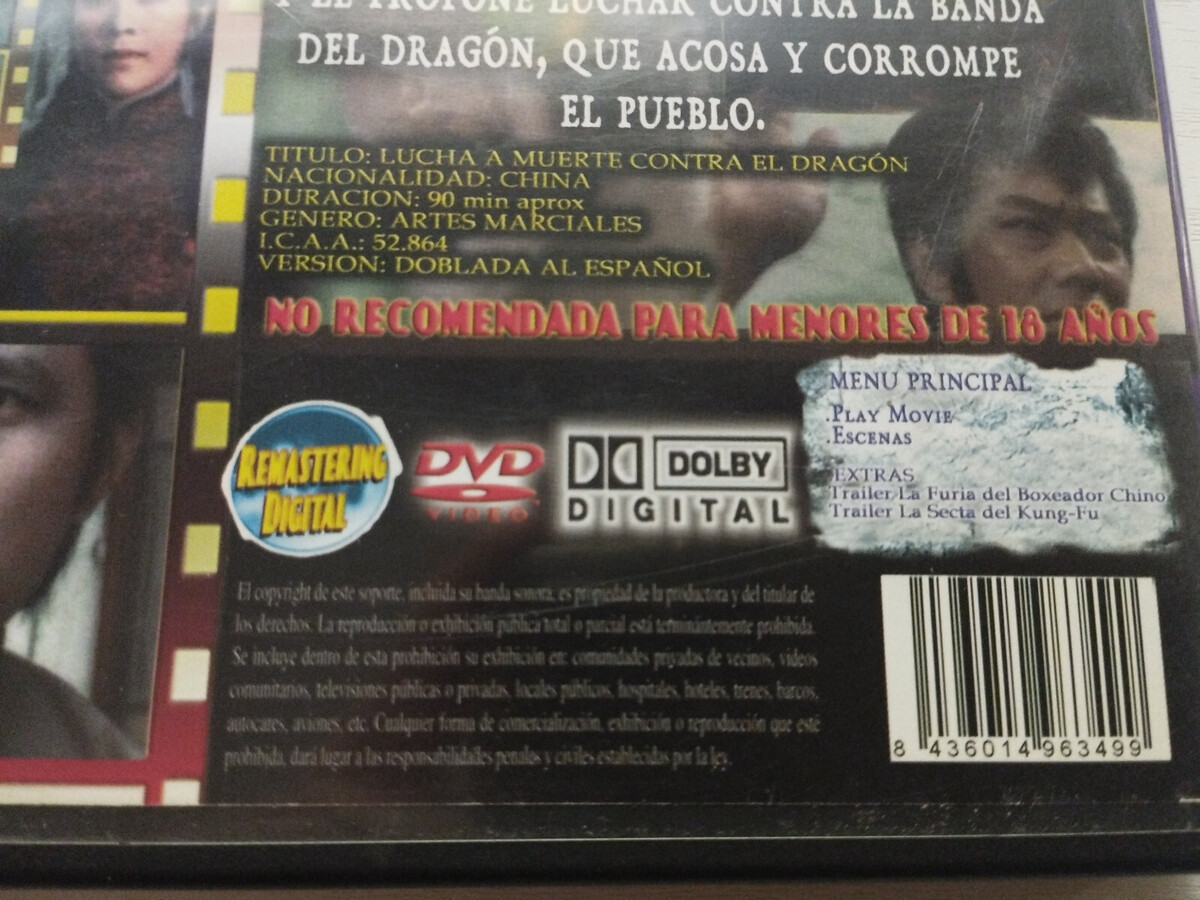El Furor del dragon Bruce Lee Chuck Norris - DVD Region 2 Espagnol Cantonais Am