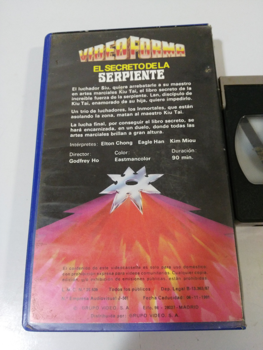 EL SECRETO DE Die Schlange Elton Chong Eagle Han Godfrey Ho VHS Tape Castellano DE AUTHENTISCHES SAMMLERSTÜCK Audio: Spanisch