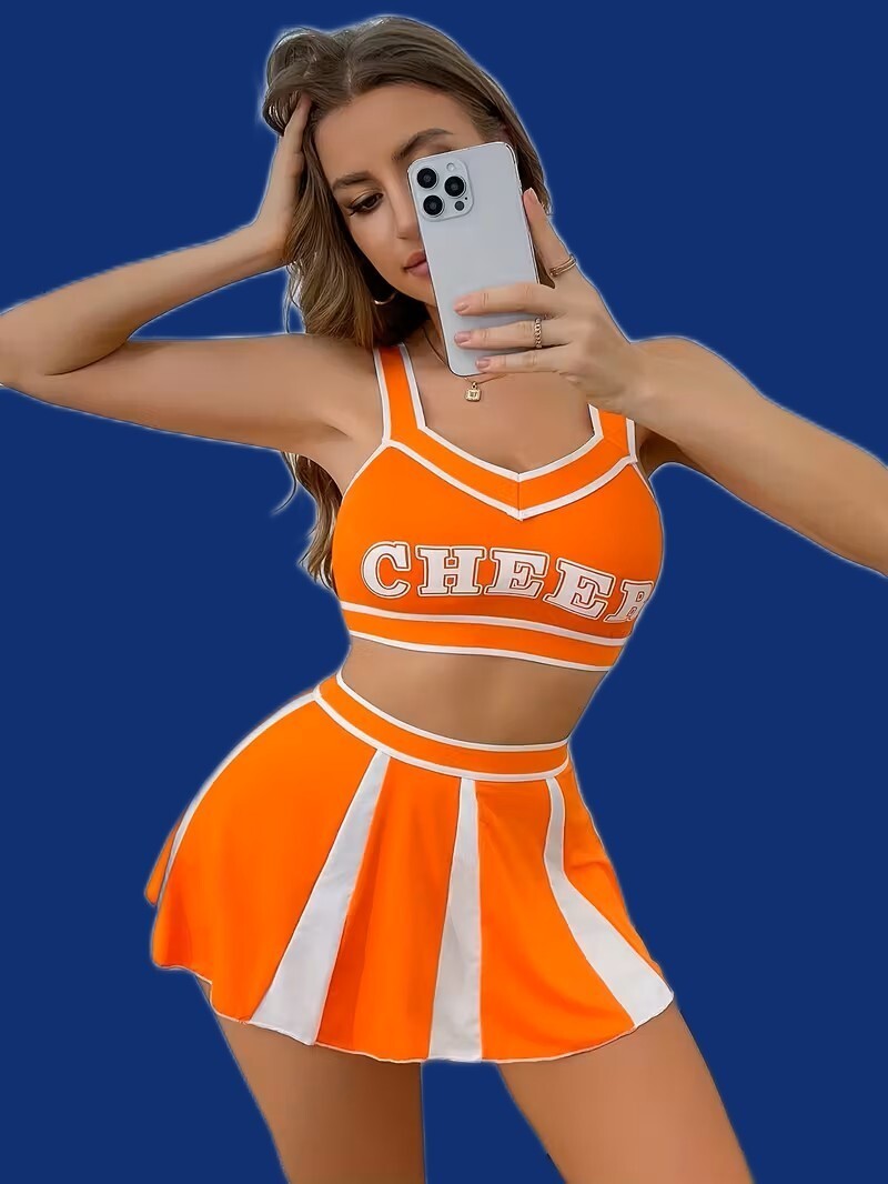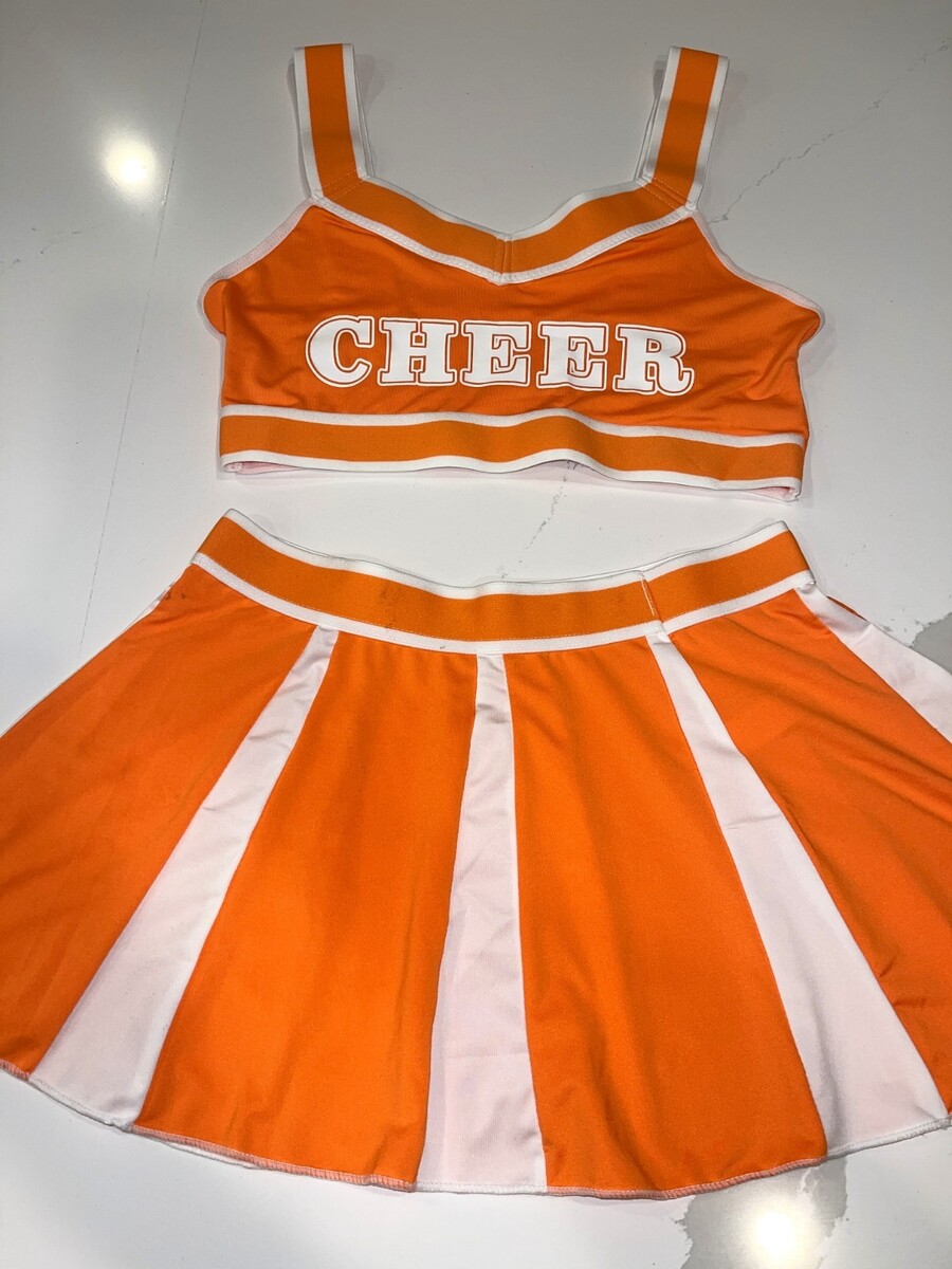 CHEER COSPLAY HALLOWEEN CHEERLEADER UNIFORM COSTUME SEXY ORANGE WHITE MEDIUM