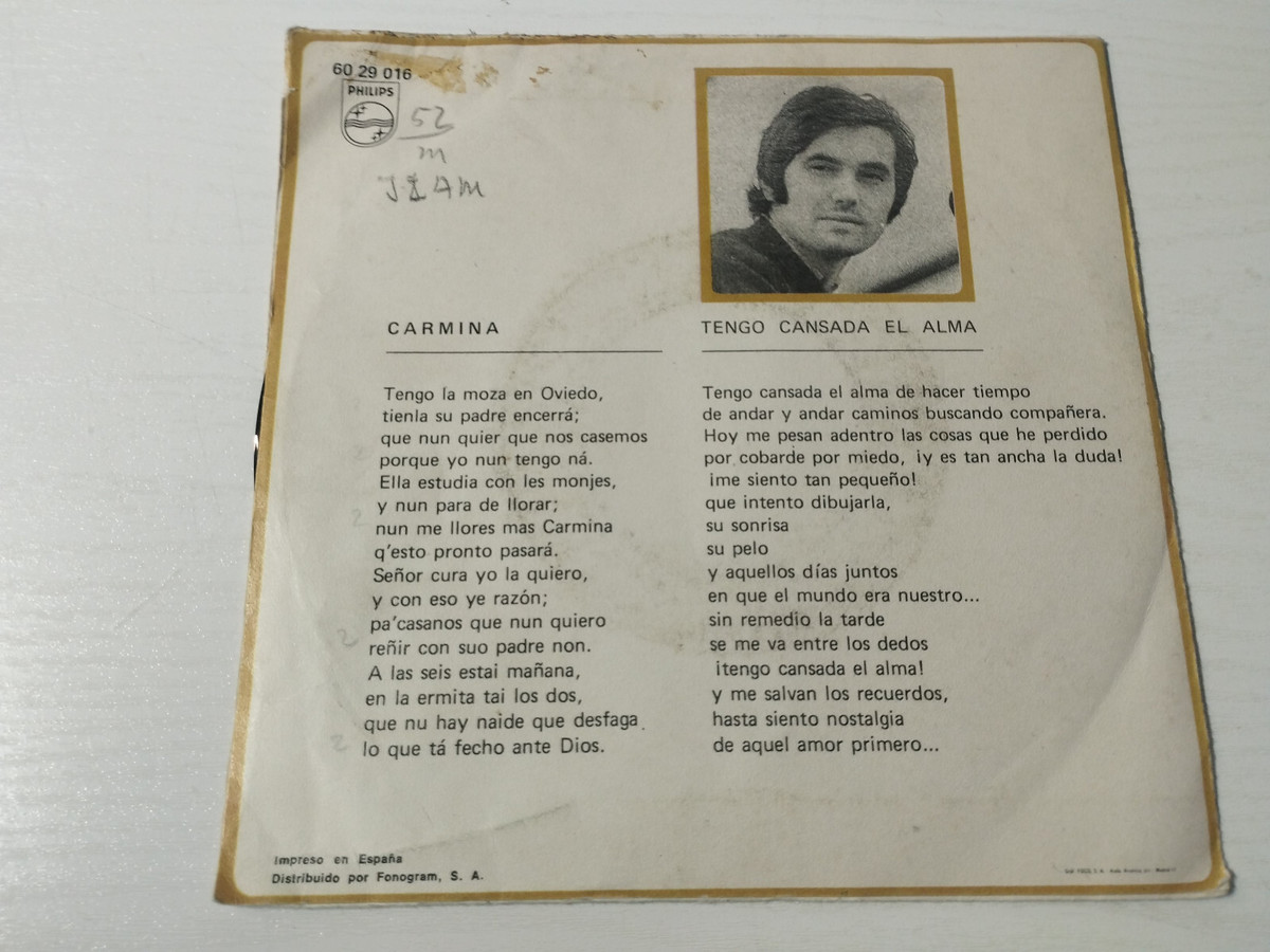 Victor MANUEL CARMINA I have tired Alma 1970 6029016 SINGLE LP vinyl 7 "VG/VG