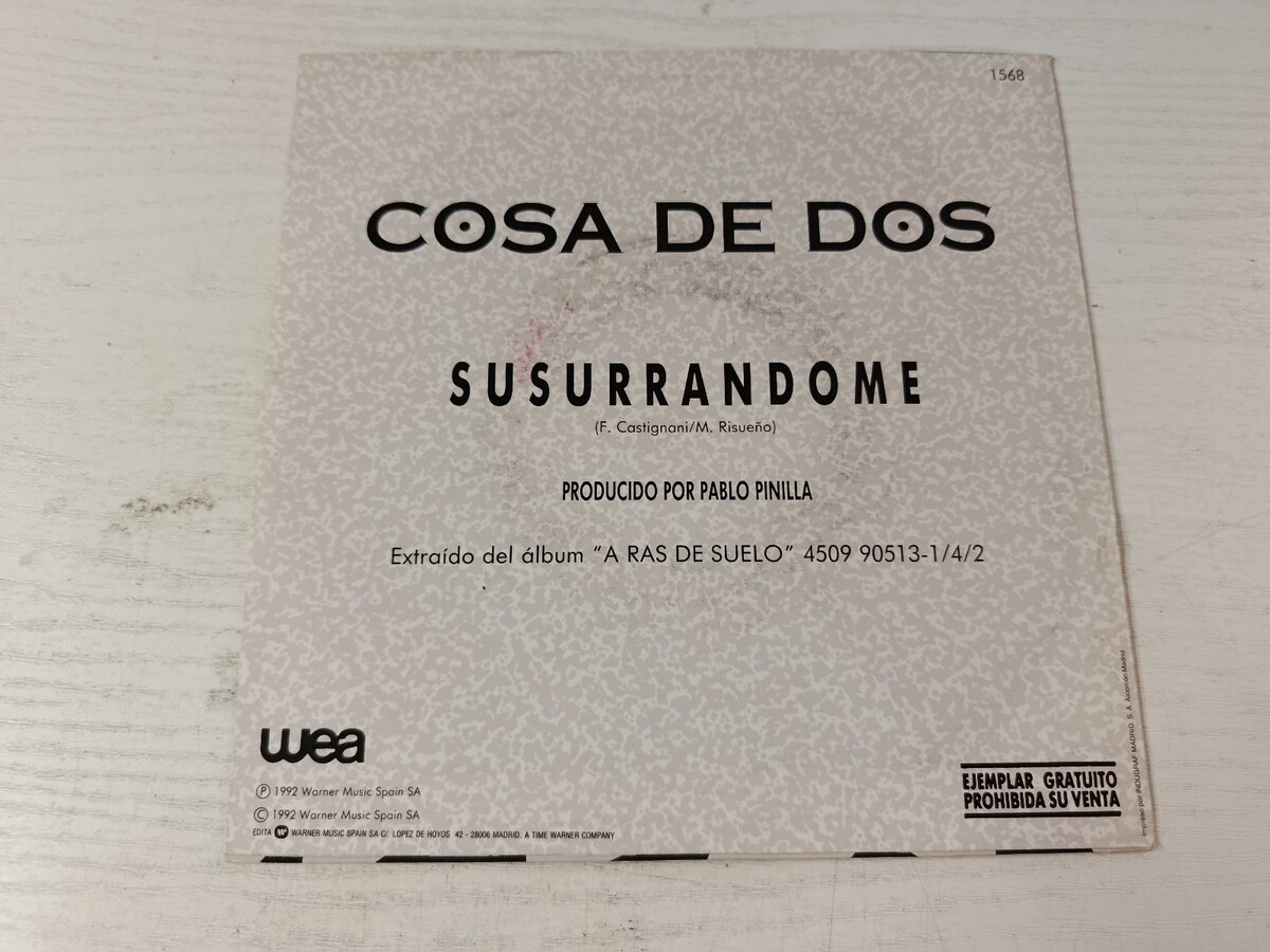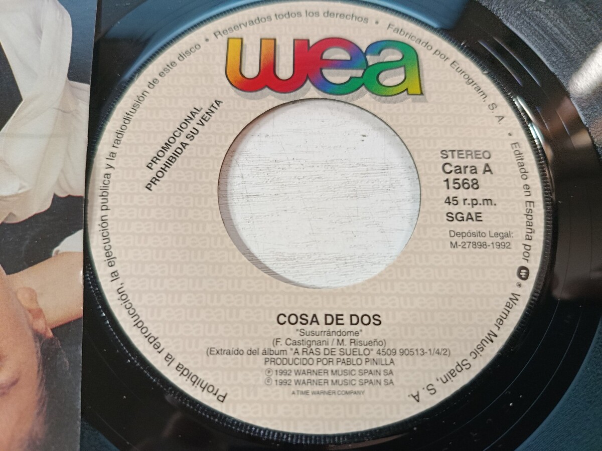 de choses dos chuchotant, wea, celibatairevinile 7, 1992, promotionnel, pop espagnol, 90s, radiovinile , Pablo Pinilla, brutde sol, specimen gratuit, collection musicale,vinile Promo rare et rare espagnol, vinyle vintage, duo espagnol, Warner Music Espagne