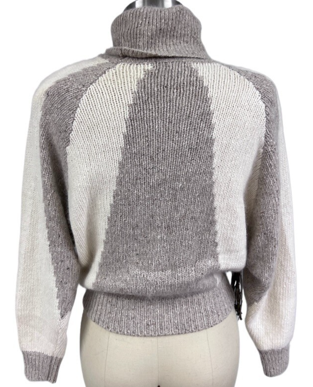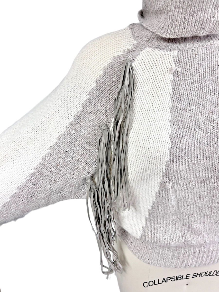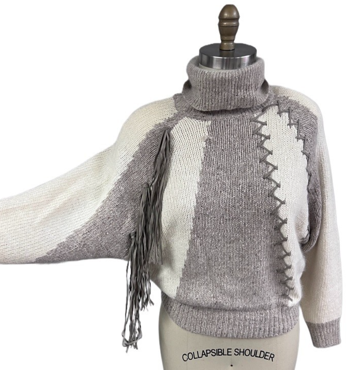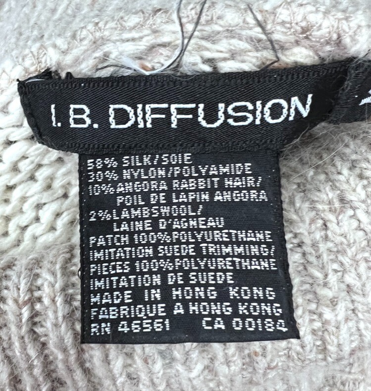 VTG 80s I.B. Diffusion Angora Blend Sweater Fringe Ivory Taupe Colorblock M
