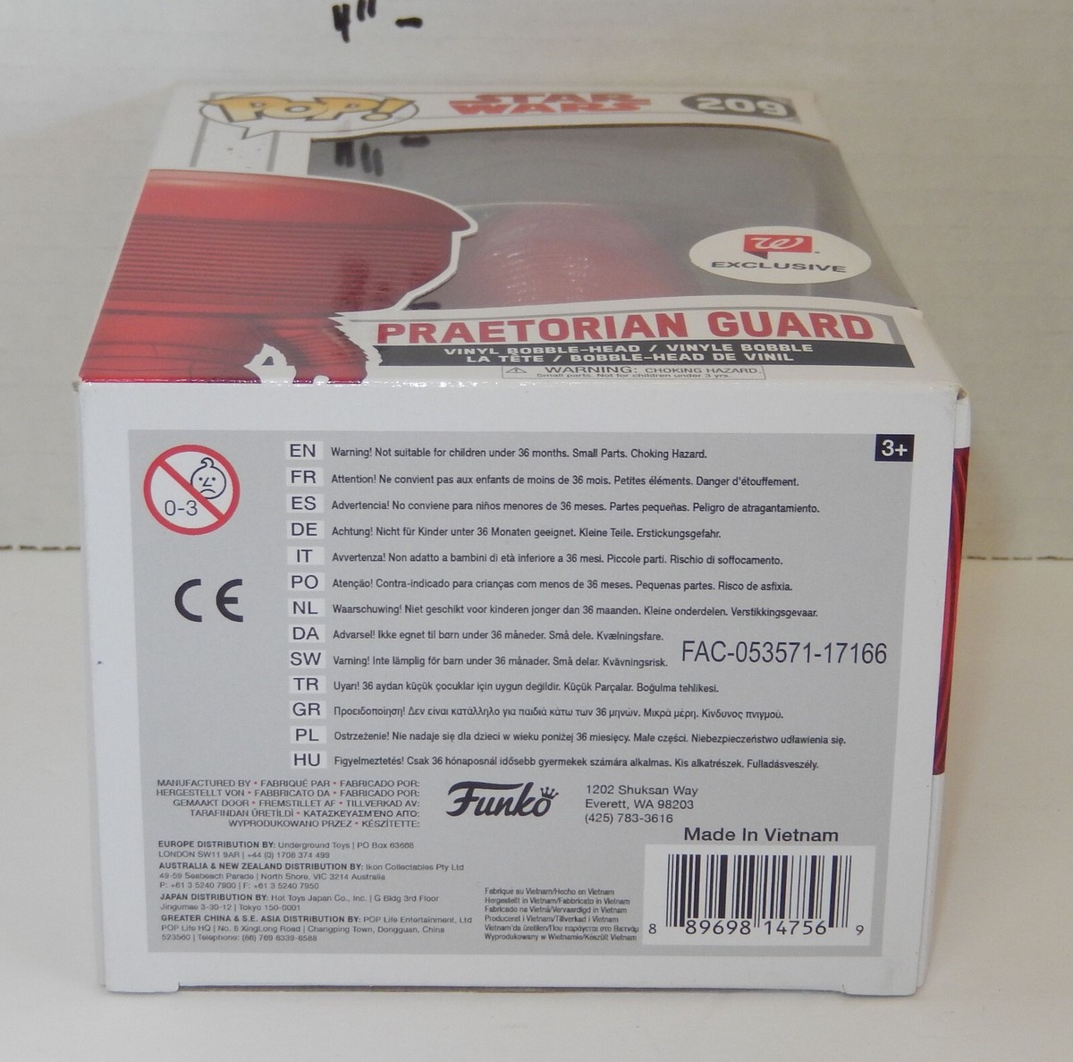 For Sale is a rare and hard to find Funko Pop Star Wars Praetorian Guard Walgreens Exclusive #209 NIP Vinyl Figure as pictured NIP condition. would make a wonderful addition to any Toy collection. Please ask Any and All Questions prior to purchasing. Fast Same or Next day shipping with Free Delivery Confirmation within the U.S. Payment Due within 7 days of purchase (if you need more time please let us know In advance) we love to combine shipping is always a Yes and Most of the time Additional Items Ship for free.