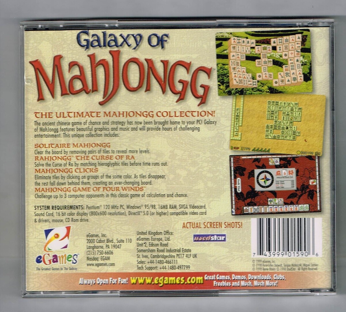 For Sale is a rare and hard to find Galaxy Of Mahjongg PC Game. Its In good USED condition. Please ask Any and All Questions prior to purchasing. Fast Same or Next day shipping with Free Delivery Confirmation within the U.S. Payment Due within 7 days of purchase (if you need more time please let us know In advance) we love to combine shipping is always a Yes and Most of the time Additional Items Ship for free.