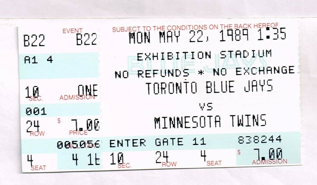 1989 Twins @ Blue Jays Ticket Stub McGriff HR May 22nd Sky Dome