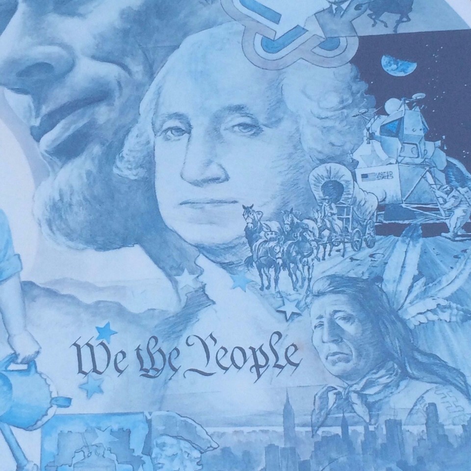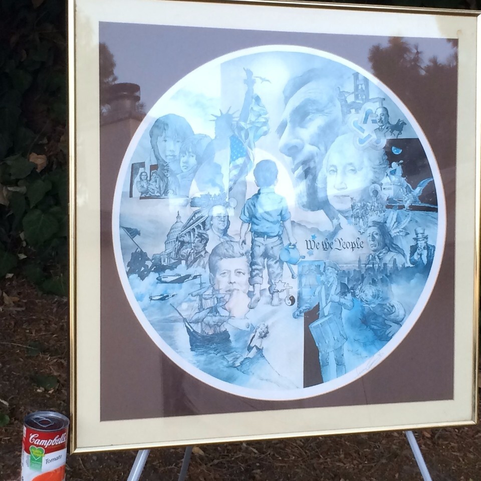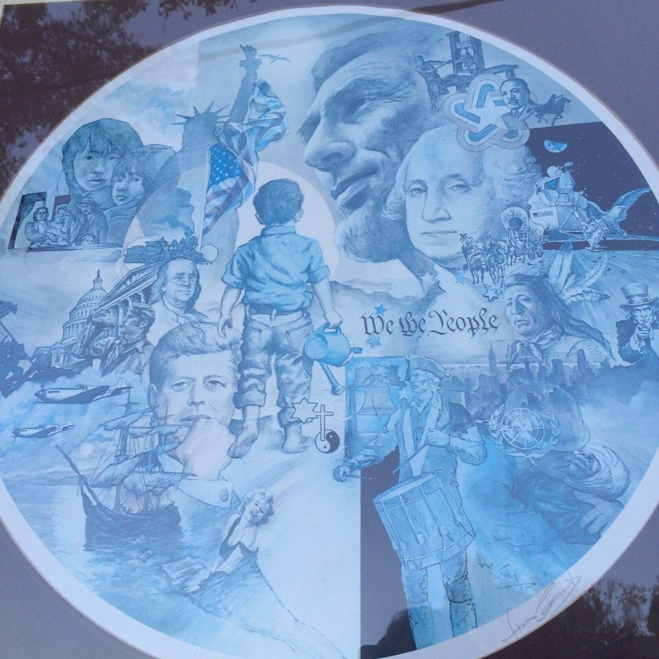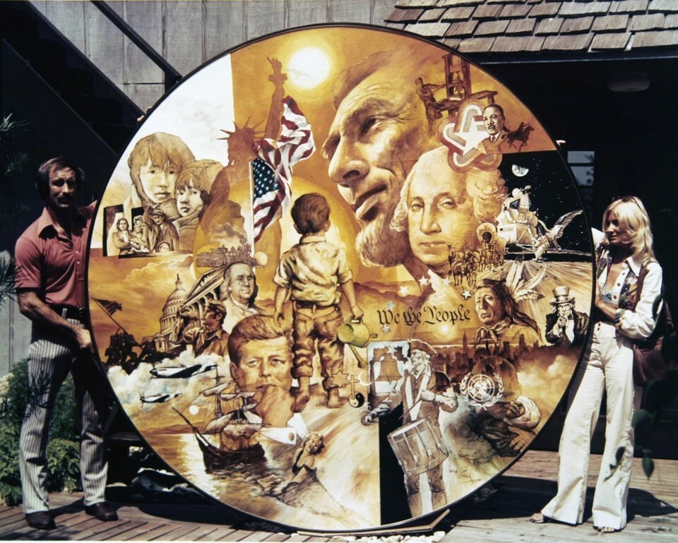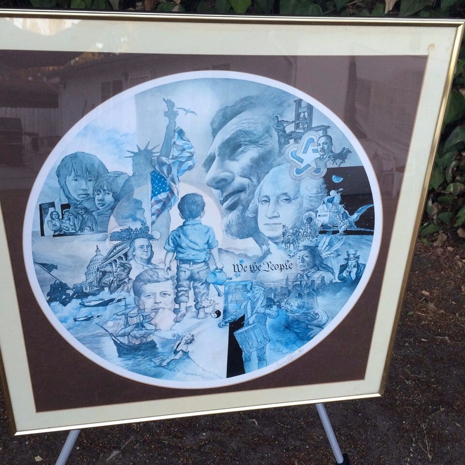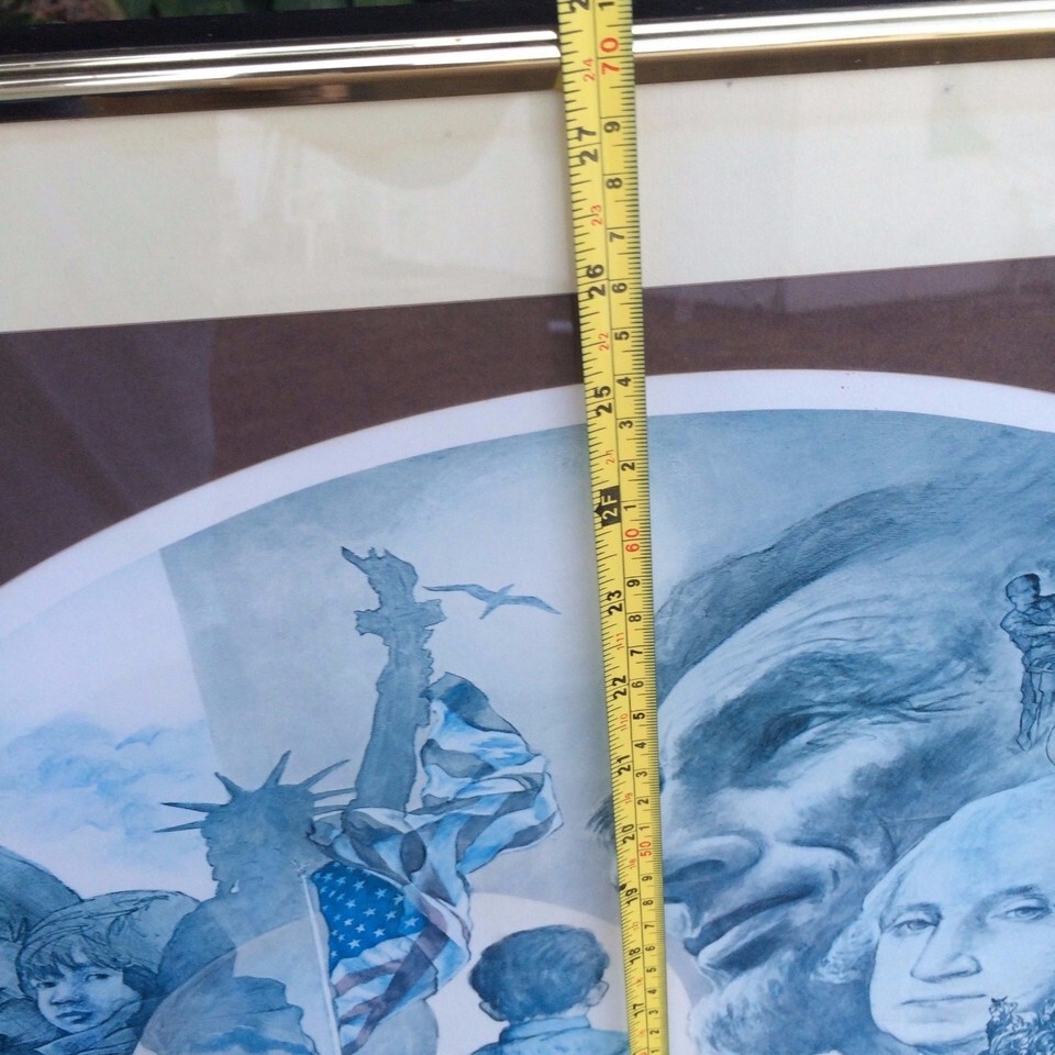 The original of the piece was a huge circular canvas present with President Gerald Ford for the Bicentennial celebration of the 200th anniversary of the USA on July 4, 1976. Very few of these rare lithographs were produced and survive today.
