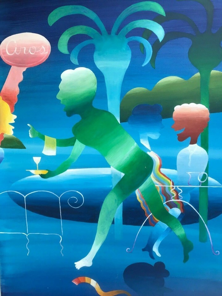 GUINN Original ABSTRACT MODERN SURREALIST ART DECO Ciros Nightclub Oil on Canvas