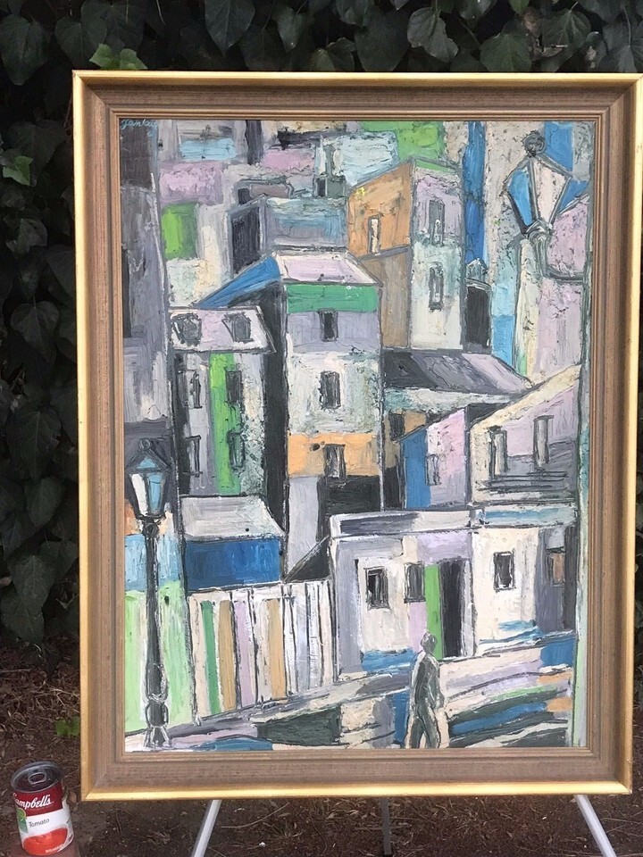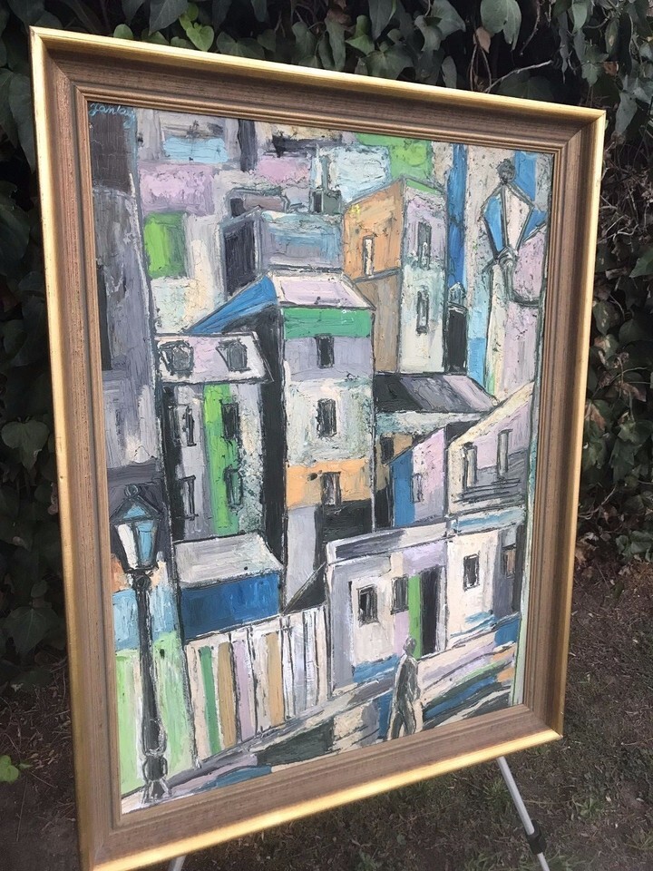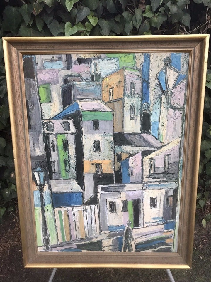TIBOR JANKAY Original ABSTRACT MODERN CUBISM EXPRESSIONIST 1960s OIL ON CANVAS