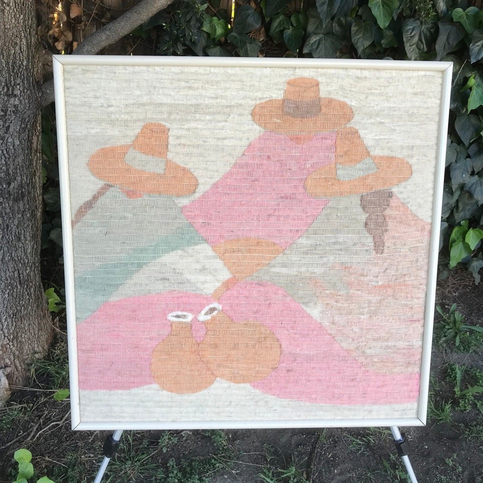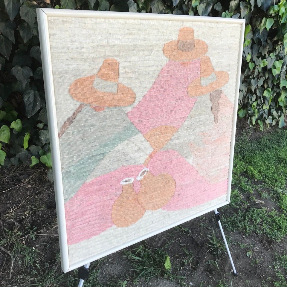 EMBROIDERY ART 1970s *Siesta* Original HAND MADE VINTAGE MID CENTURY MODERN ART