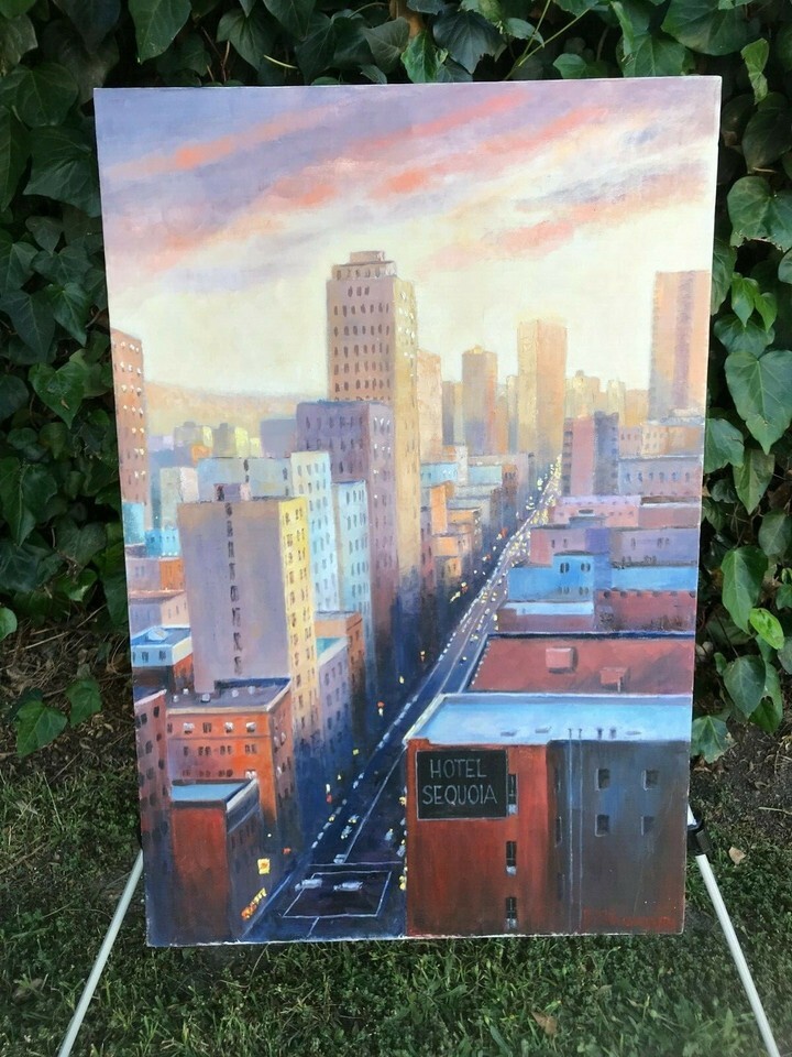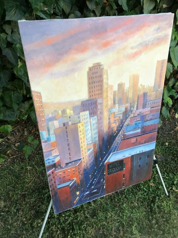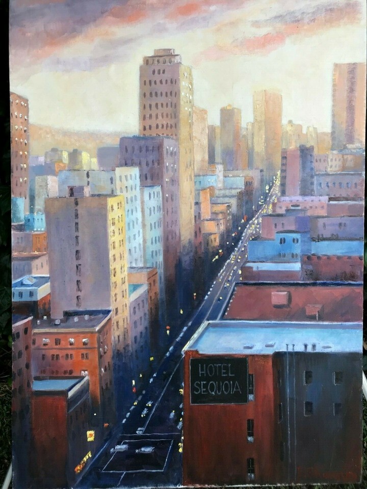 D SHANNON Original MODERN CUBIST CITY Urban StreetScape Signed Oil on Canvas