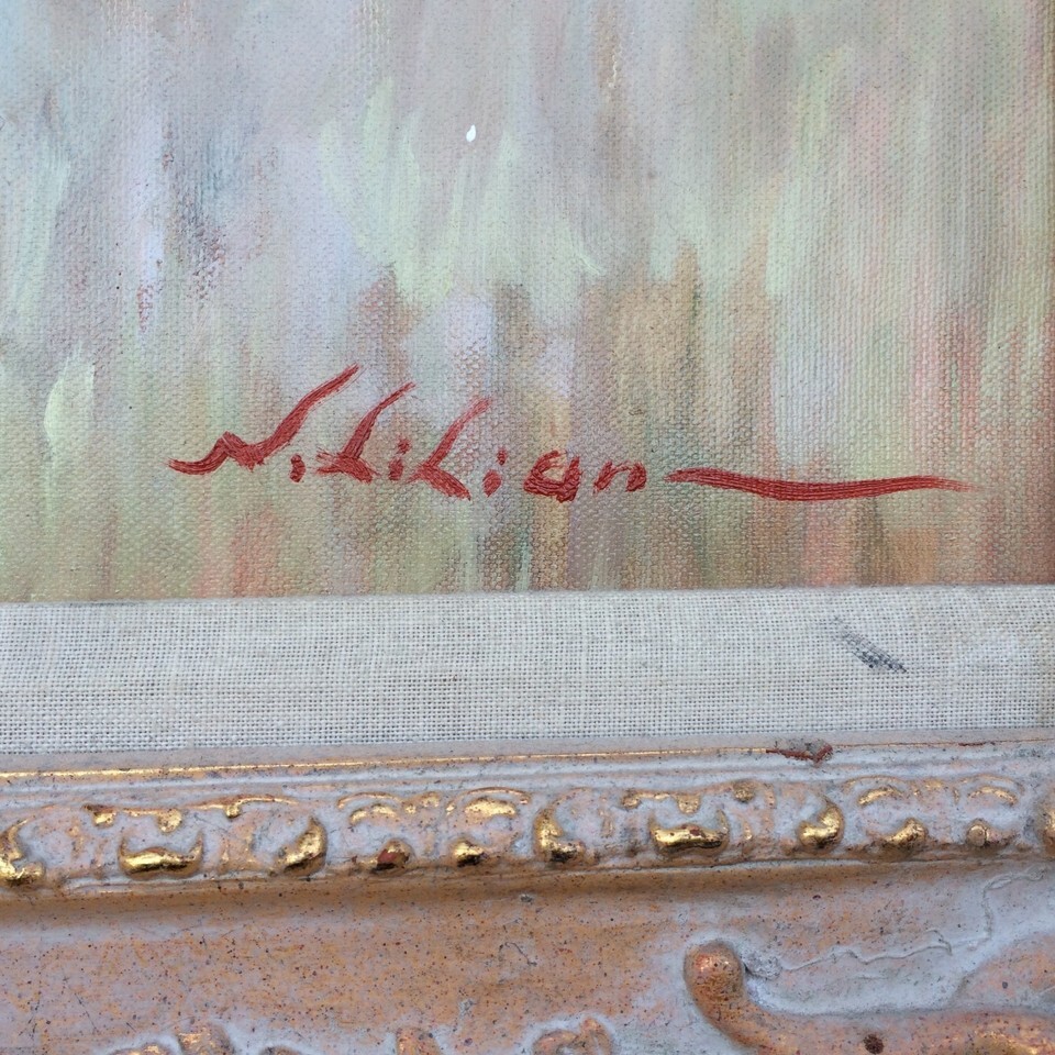 N LILIAN Original 1950s MODERN HUGE IMPRESSIONIST Oil on Canvas with Gesso Frame