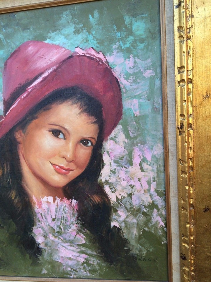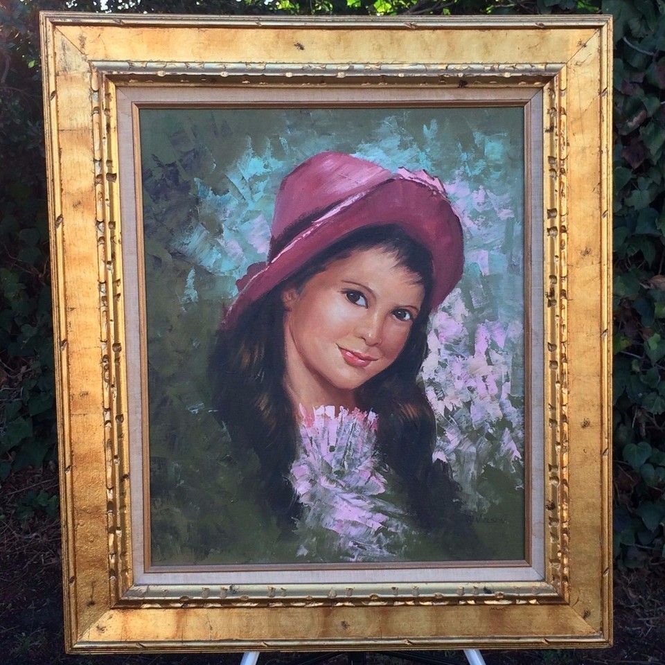 MID CENTURY ORIGINAL Oil on Canvas Signed w/ Gilded Frame "Portrait of a Girl"