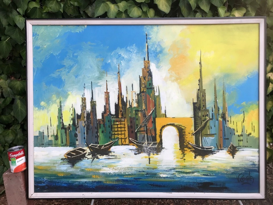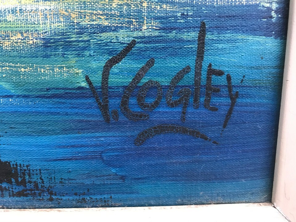 LUIS COGLEY Original ABSTRACT CUBIST SEASCAPE HUGE MODERN SURREALISM Oil Canvas