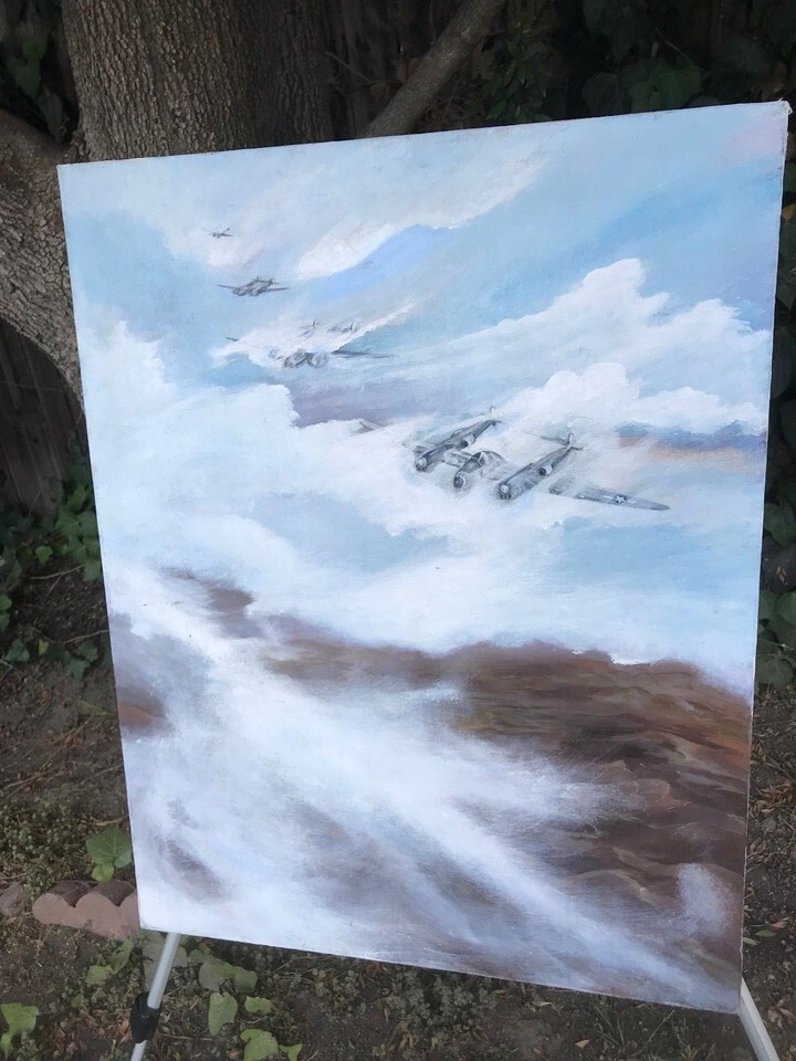 WWII P38s LIGHTNINGS Original MODERN IMPRESSIONIST WW2 AVIATION ART Oil & Canvas
