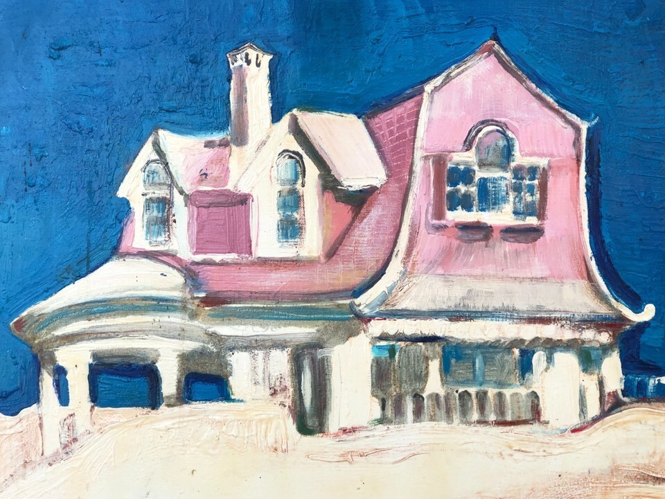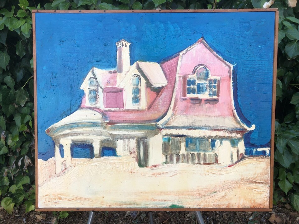 WARREN LONG Original ABSTRACT MODERN EXPRESSIONIST BEACH HOUSE CUBIC ACRYLIC OIL