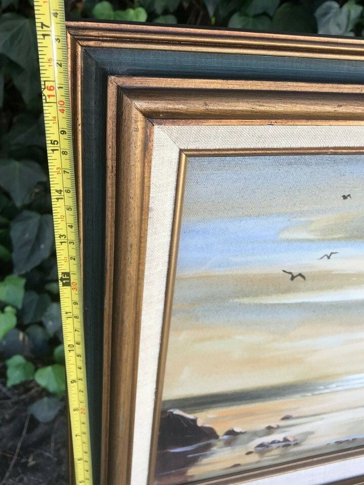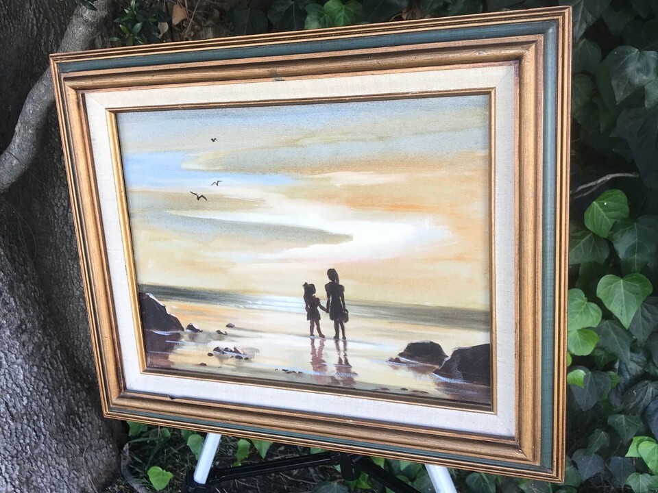 ORIGINAL Vintage SEASCAPE *Sisters at The Beach* MODERN Framed Art Oil on Canvas