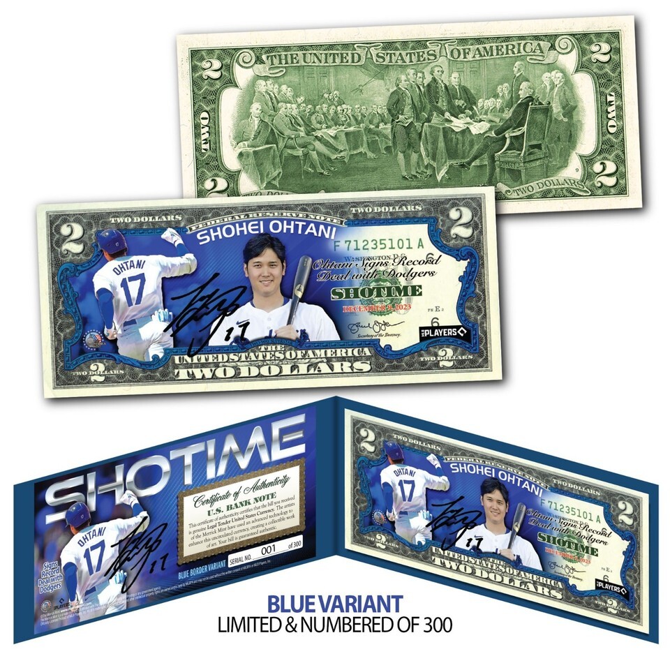 SHOHEI OHTANI Signs with Dodgers Licensed US $2 Bill LTD Blue Variant S/N of 300