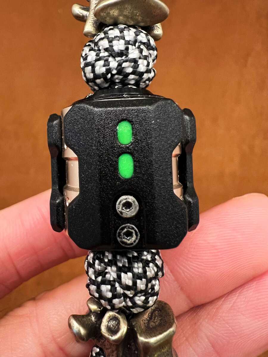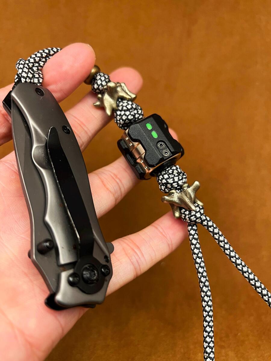 Material: copper + 550 paracord + aluminium + stainless steel + glow in the dark