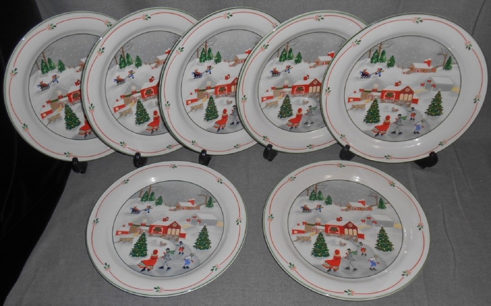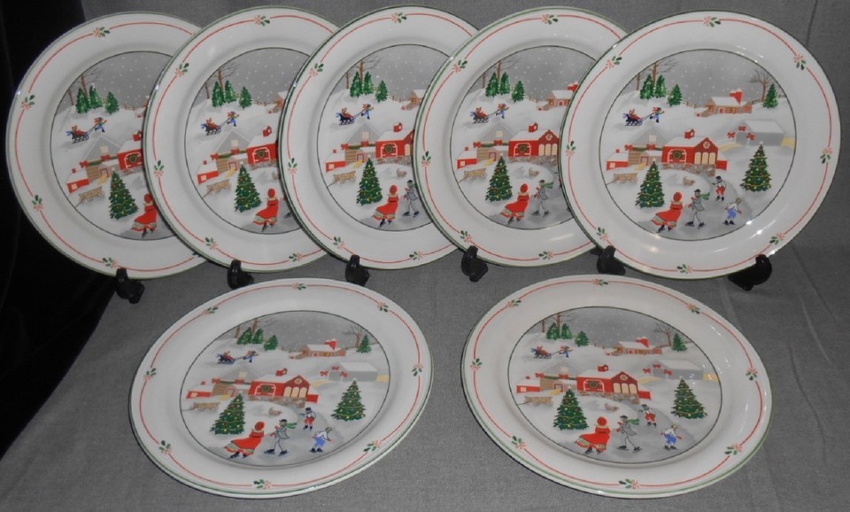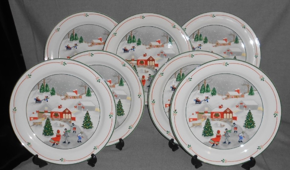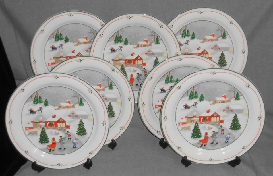 Set (7) Sango SILENT NIGHT PATTERN Dinner Plates JOAN LUNTZ