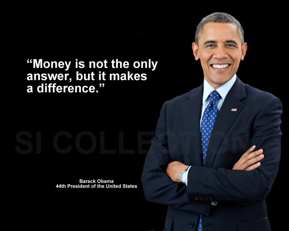 BARACK OBAMA "MONEY IS NOT THE ONLY ANSWER, BUT IT..." QUOTE PHOTO VARIOUS SIZES