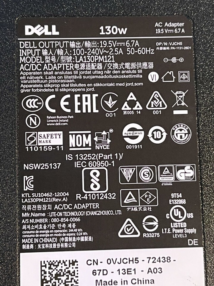 Oem Dell Ac Adapter 130W Model LA130PM121 and 49 similar items