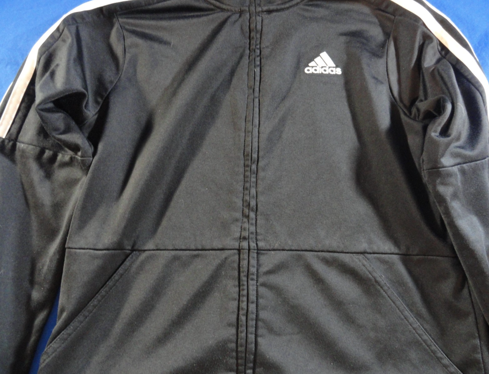 ADIDAS BLACK WHITE FULL ZIP UP ATHLETIC SPORT SOCCER SWEATER YOUTH M 10/12
