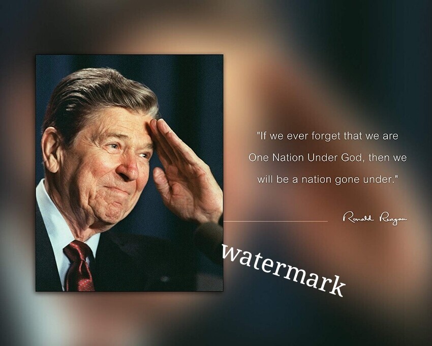 PRESIDENT GOOD QUOTE REAGAN "IF WE FORGET ONE NATION UNDER GOD" PUBLICITY PHOTO