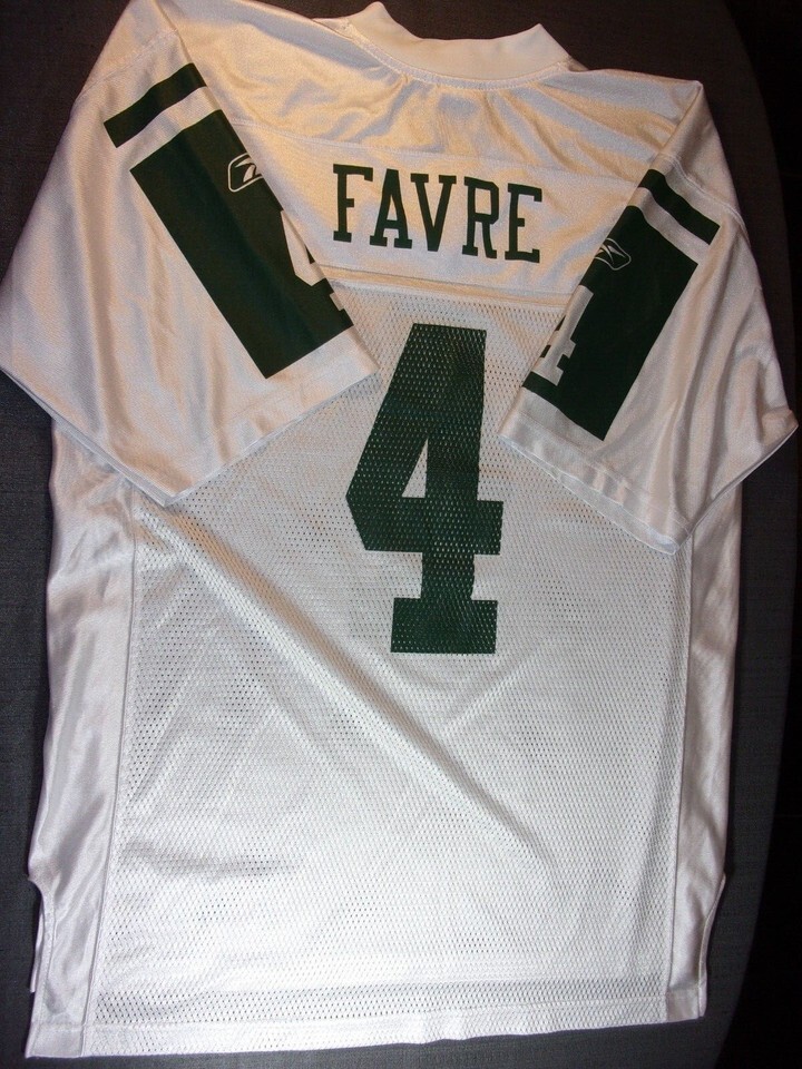 REEBOK NFL NEW YORK JETS #4 BRETT FAVRE FOOTBALL JERSEY SIZE LARGE WHITE SV 21