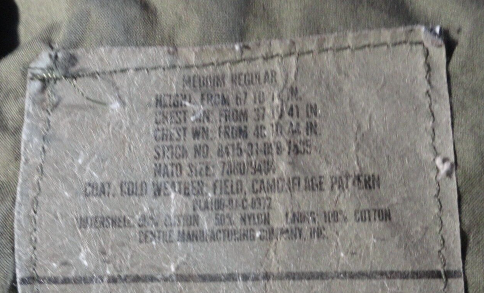 USGI M-65 BDU WOODLAND CAMOUFLAGE COLD WEATHER CW FIELD JACKET COAT MEDIUM REG