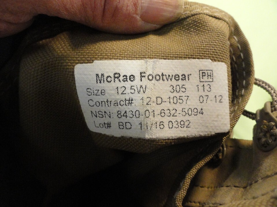 U.S. MILITARY COYOTE COMBAT BOOTS MCRAE HOT WEATHER 12.5W 8430-01-632-5094