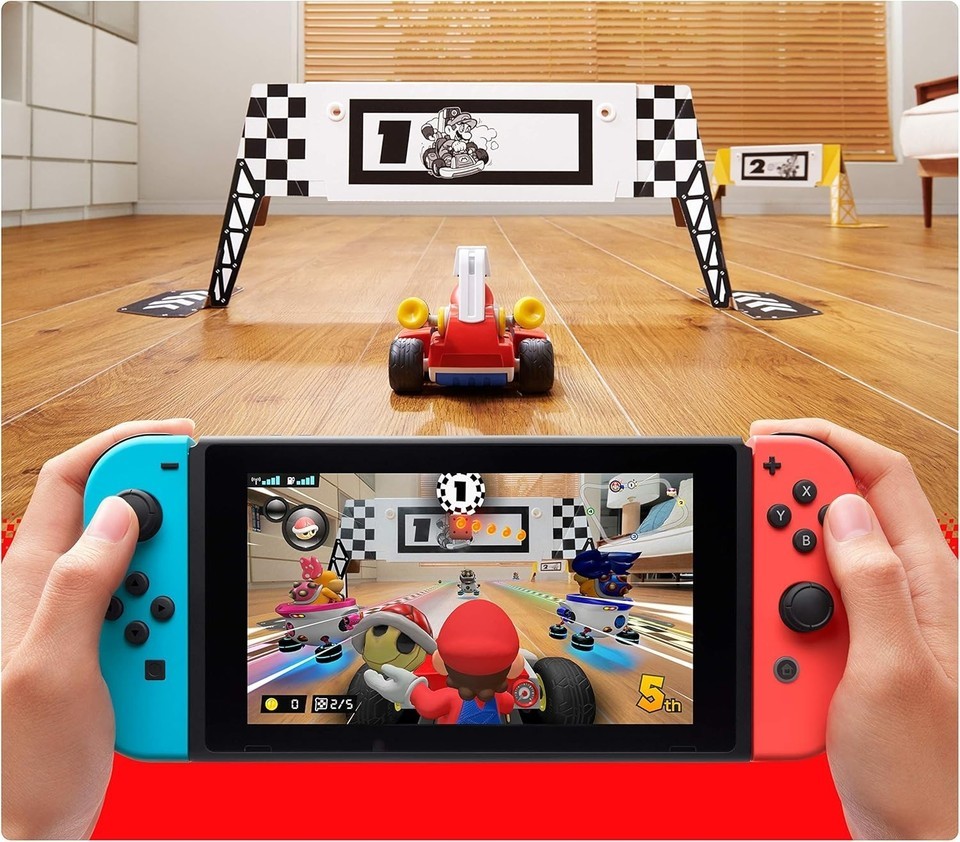 Ein Wagen mit integrierter Kamera synchronisiert sich mit Ihrer Nintendo Switch und verwandelt Ihr Zimmer sofort in eine Mario Kart-Schaltung. Ein neues Mario Kart-Erlebnis, bei dem Realitat und Gaming verschmelzen, beginnt jetzt!