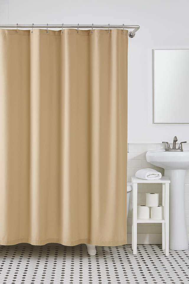 Beige Magnetized Shower Curtain Liner Mildew Resistant