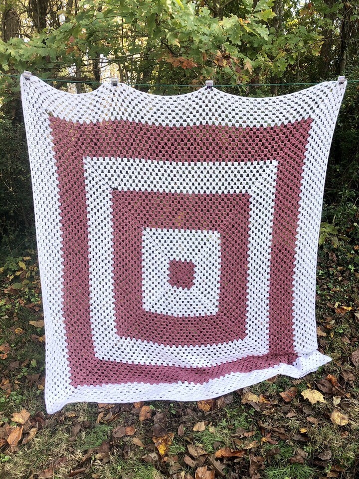 The blanket features a timeless square shape and is made from quality crochet material, ensuring both comfort and durability. Its unique style offers a cozy and bohemian vibe, making it a perfect accent for any room or a thoughtful gift for those who appreciate handmade items and the nostalgia of vintage design.