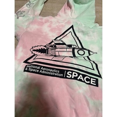 Hyper Space Size M NASA Pullover Hoodie Spaceship Astronaut Pastel Tie Dye NWT.