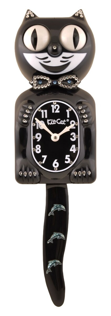 Limited Dolphins Black Tail Kit-Cat Klock Swarovski Crystals Jeweled Clock