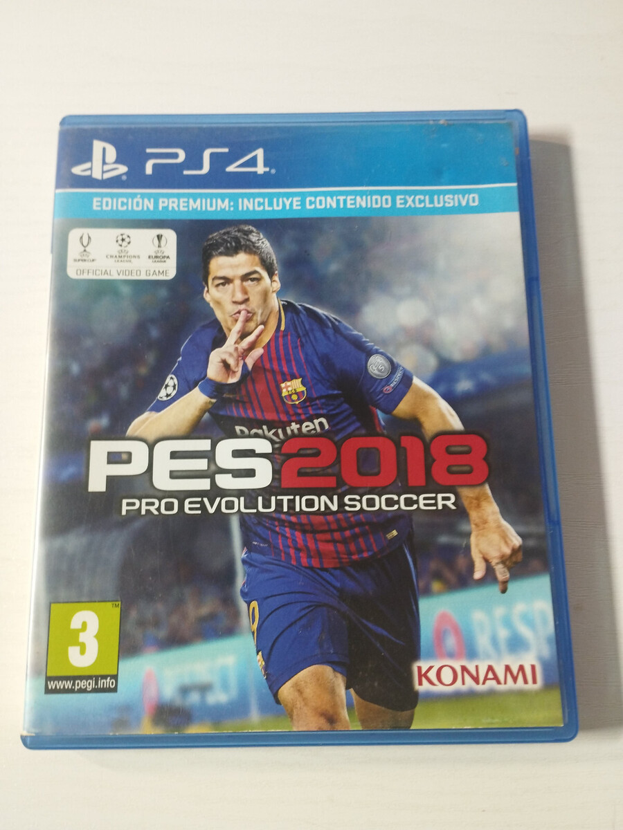 PES 2018, Pro Evolution Soccer 2018, PS4, PAL, CUSA-08251, soccer, Konami , Region 2, sports juego , PlayStation 4, premium edition, physical disc, EAN 4012927103098, PEGI 3, online cooperative, Spanish compatible, collector,juego pre-owned