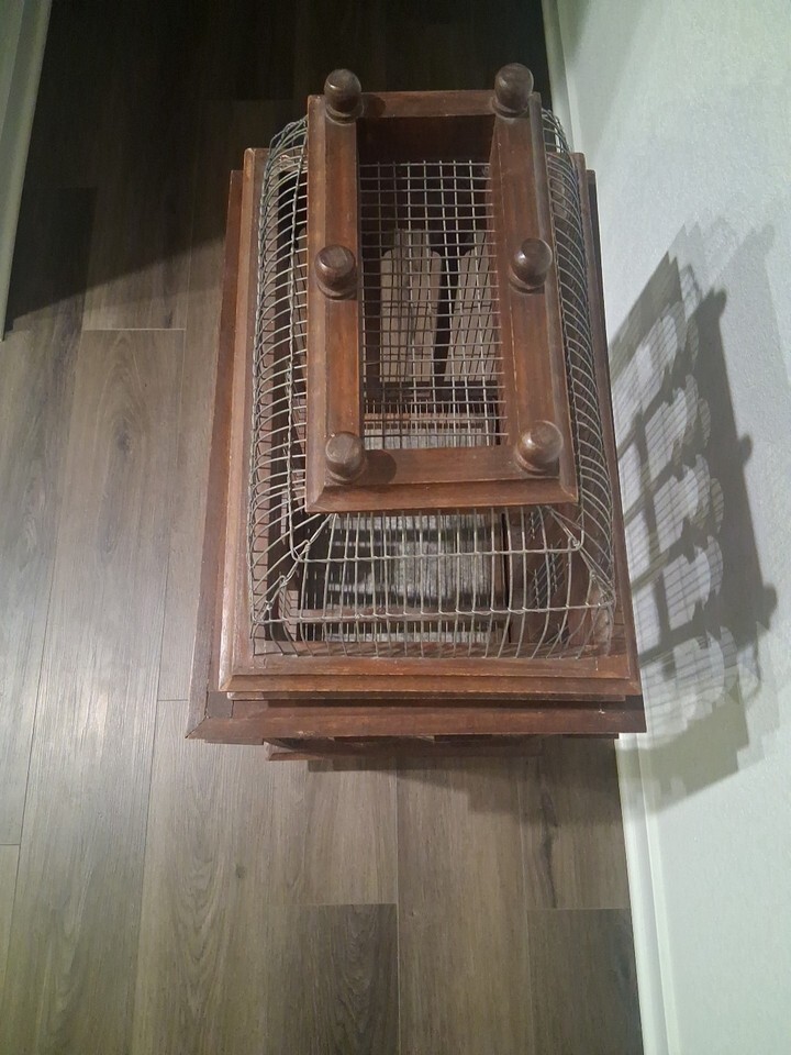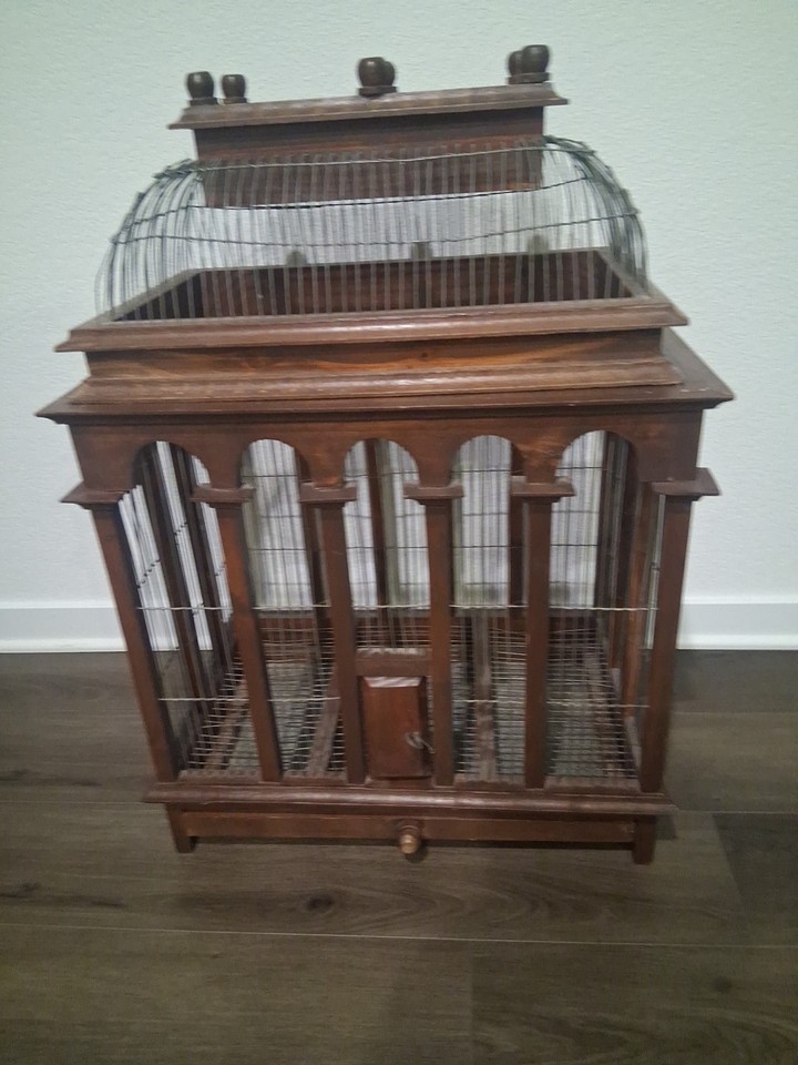 This product is a rare antique large Victorian architectural dome top wooden birdcage made of mahogany. The birdhouse features a unique design with an entrance at the top, embodying the style of the Victorian era. Crafted from wood, this decorative collectible adds a touch of charm and history to any space it is displayed in. Perfect for bird enthusiasts or collectors of architectural artifacts, this birdcage showcases intricate details and craftsmanship that are sure to impress.