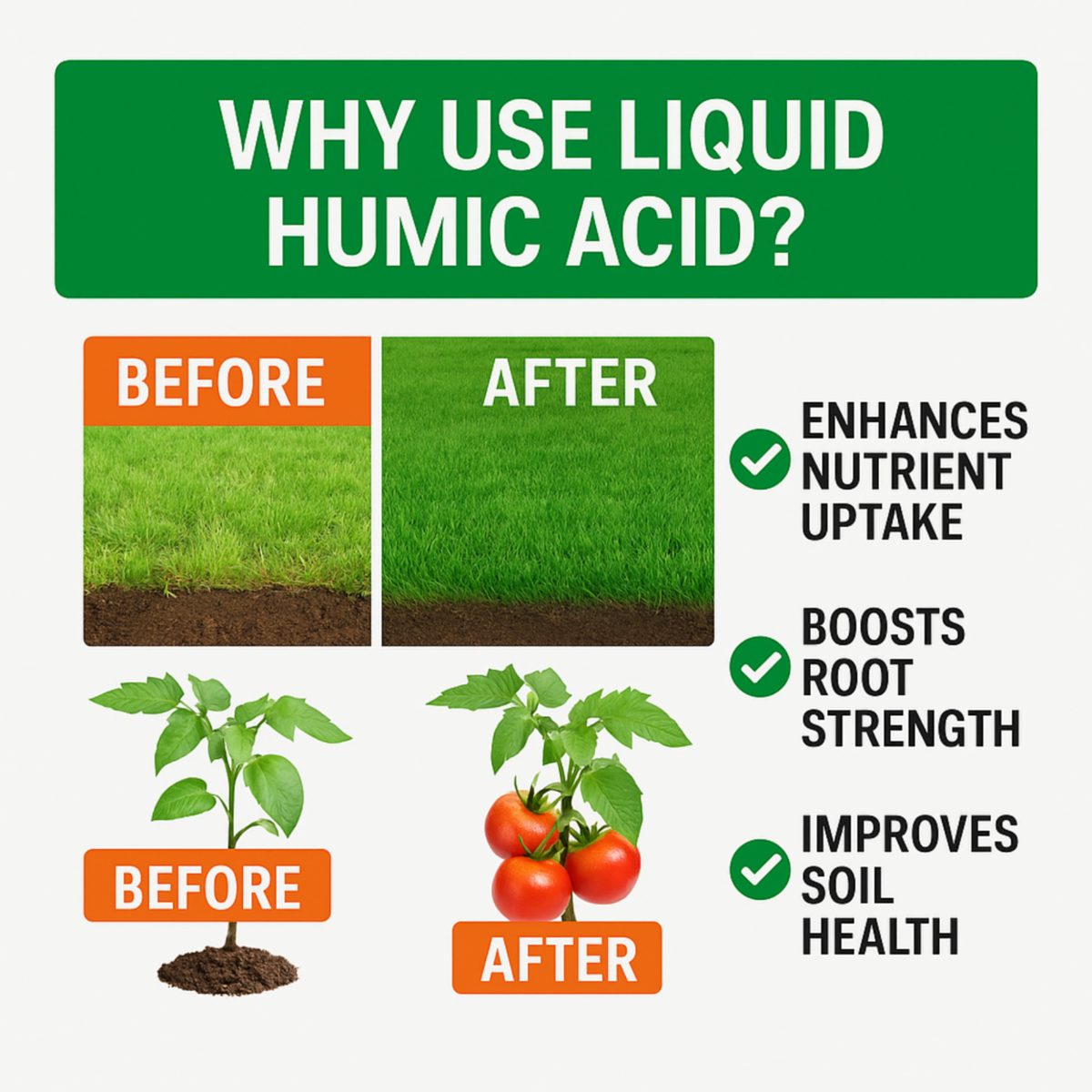 GS Plant Foods? Liquid Humic Acid is easily assimilated by plants and some of its main functions include improving plant immunity, improving plant metabolism, improving plant root development, improving the supply of plant nutritional elements and increasing the formation of ferments. Humic Acid promotes the increased accumulation of chlorophyll, sugar, amino acids and more and improves the efficiency of nitrogen utilization, allowing for reduced fertilizer rates.