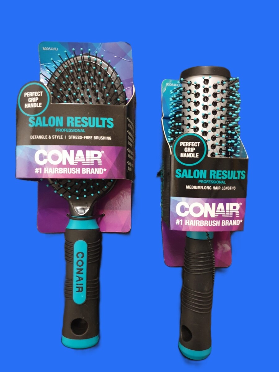 Conair Salon Results Professional Cushion Hair Brush Set Black Detangle Style.