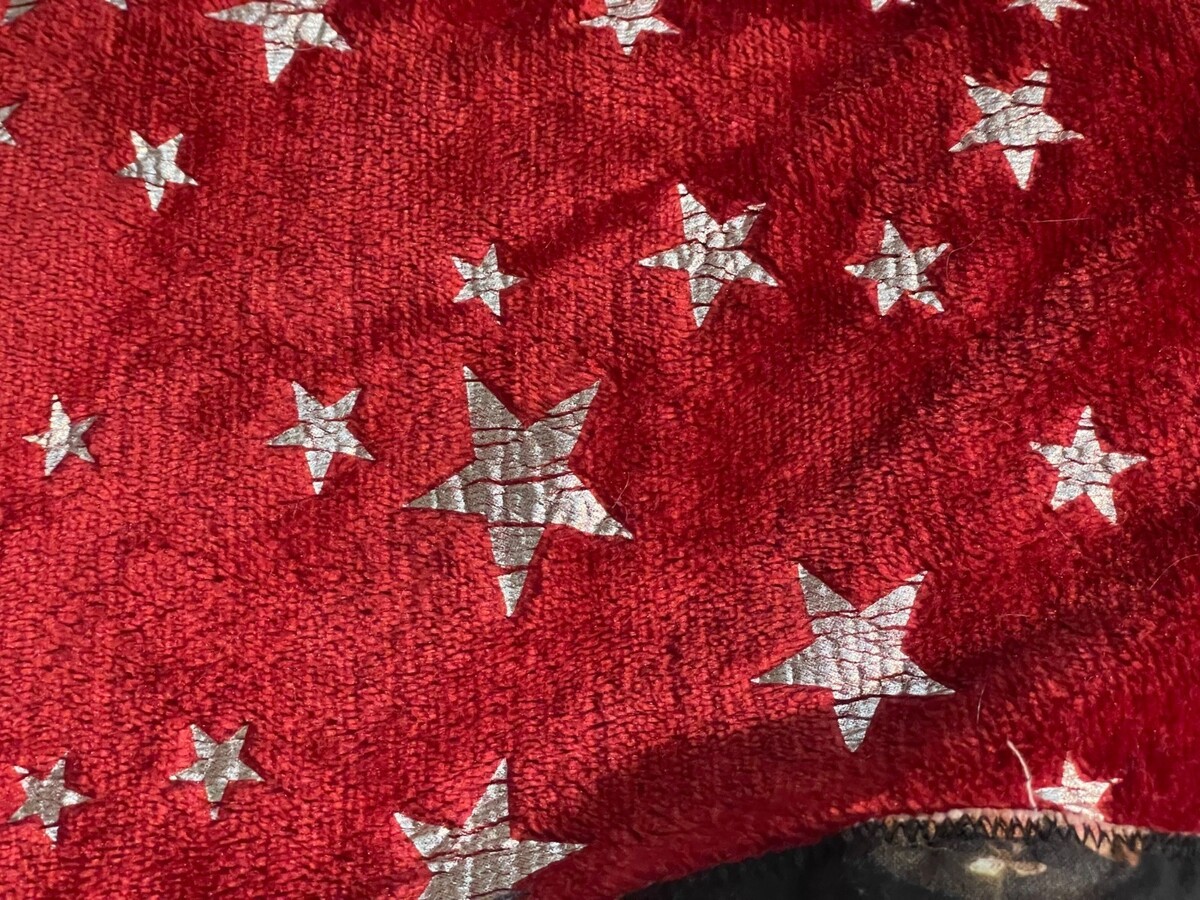 This twin-size quilt features a patchwork design highlighting all four Hogwarts houses ? Gryffindor, Hufflepuff, Slytherin, and Ravenclaw ? on one side, with a character-themed fabric on the reverse. The backing is a soft red fleece with metallic star detailing, making it cozy and perfect for movie nights, dorm decor, or a themed bedroom.