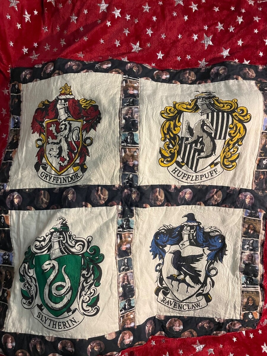 Bring a touch of Hogwarts magic to your bedroom with this handmade reversible Harry Potter inspired twin quilt.